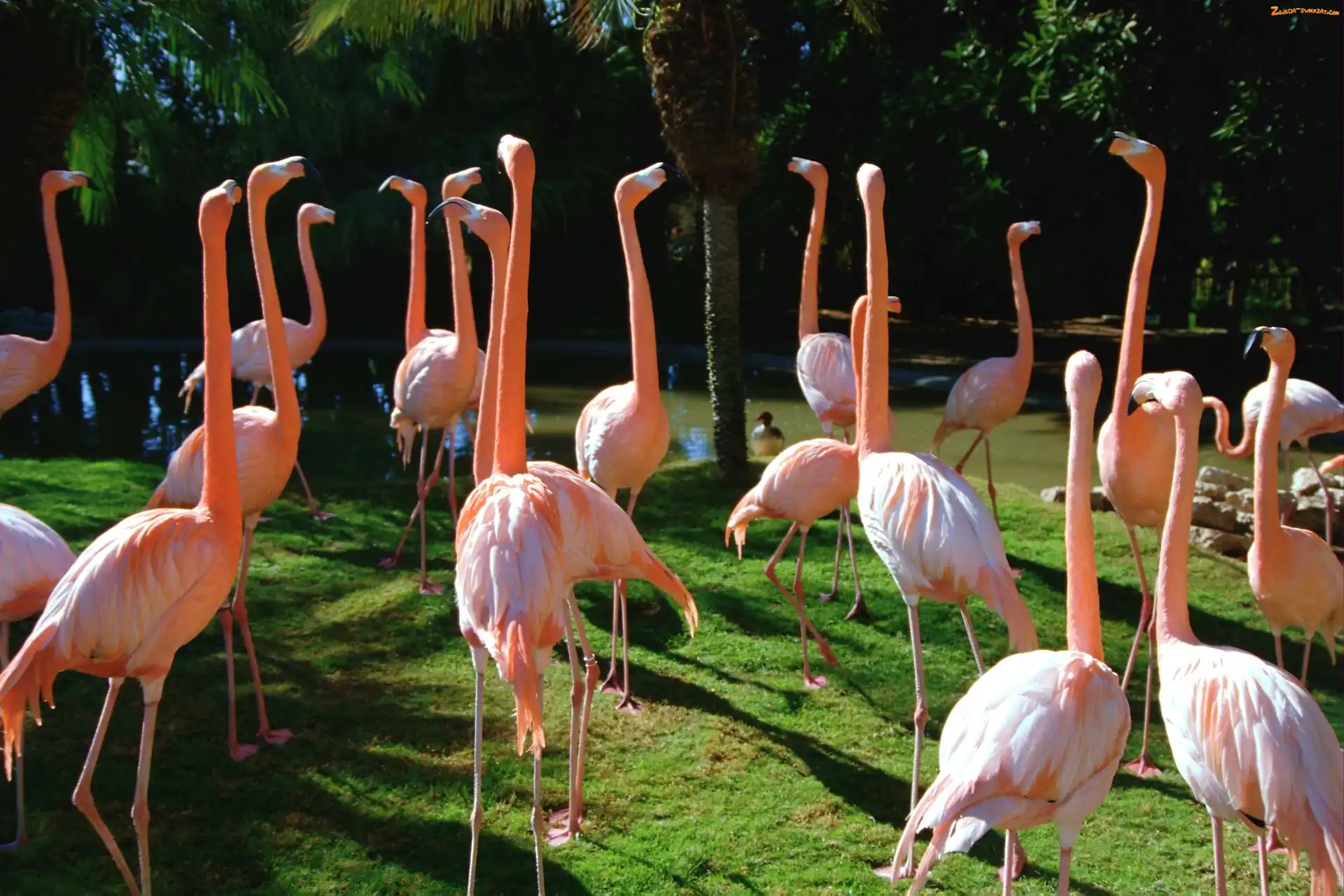 Flamingi, Stado, Czerwonaki, Różowe
