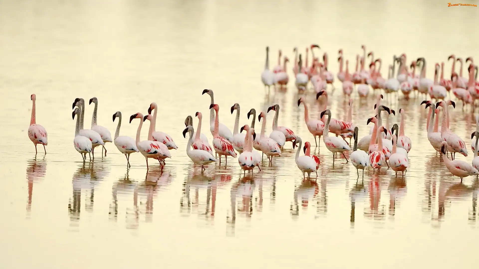 Flamingów, Rozmycie, Stado, Woda