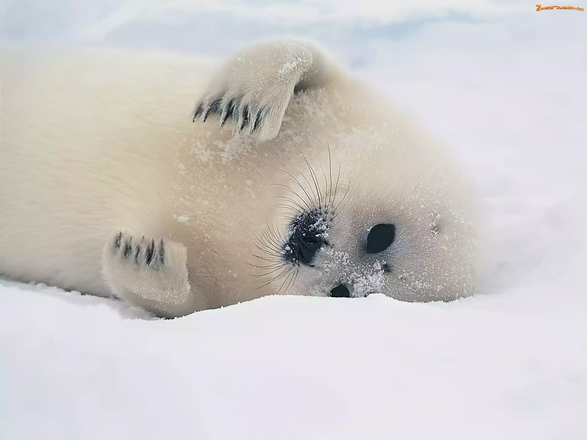 Zdjęcie: Foczka, Łapki, Biała, Śnieg