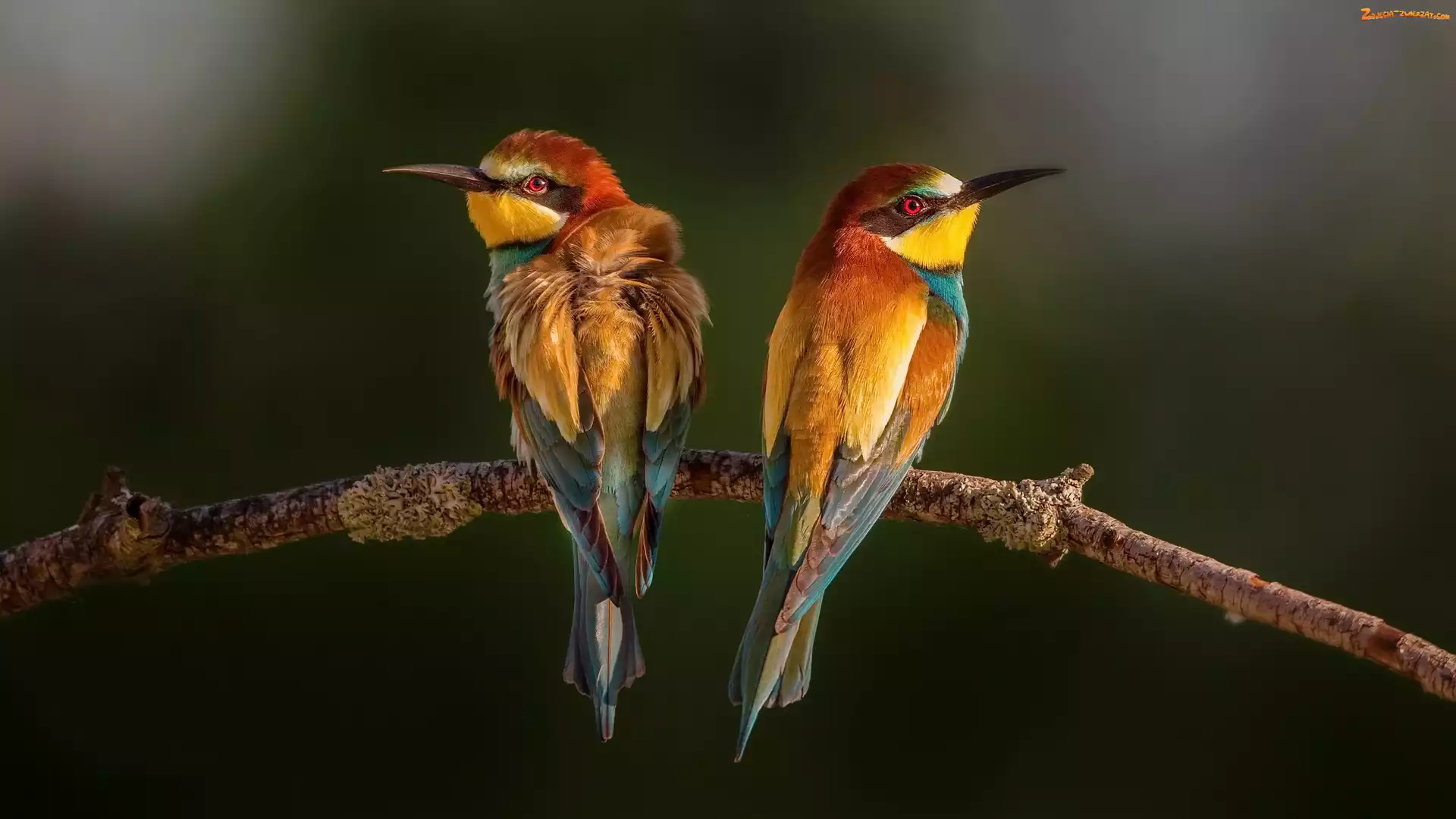 Zdjęcie: Gałąź, Żołna, Kolorowe, Dwa, Ptaki