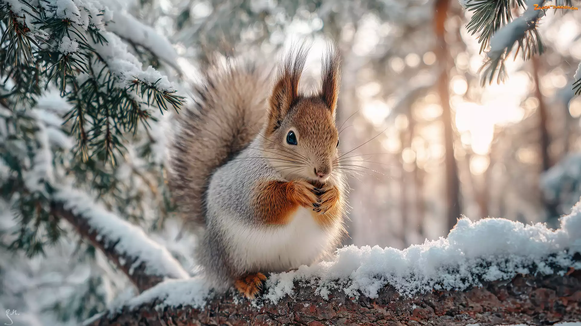 Wiewiórka, Gałąź, Grafika AI, Śnieg