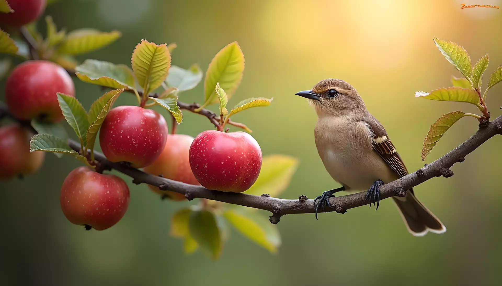 Zdjęcie: Ptak, Jabłka, Grafika, Gałąź