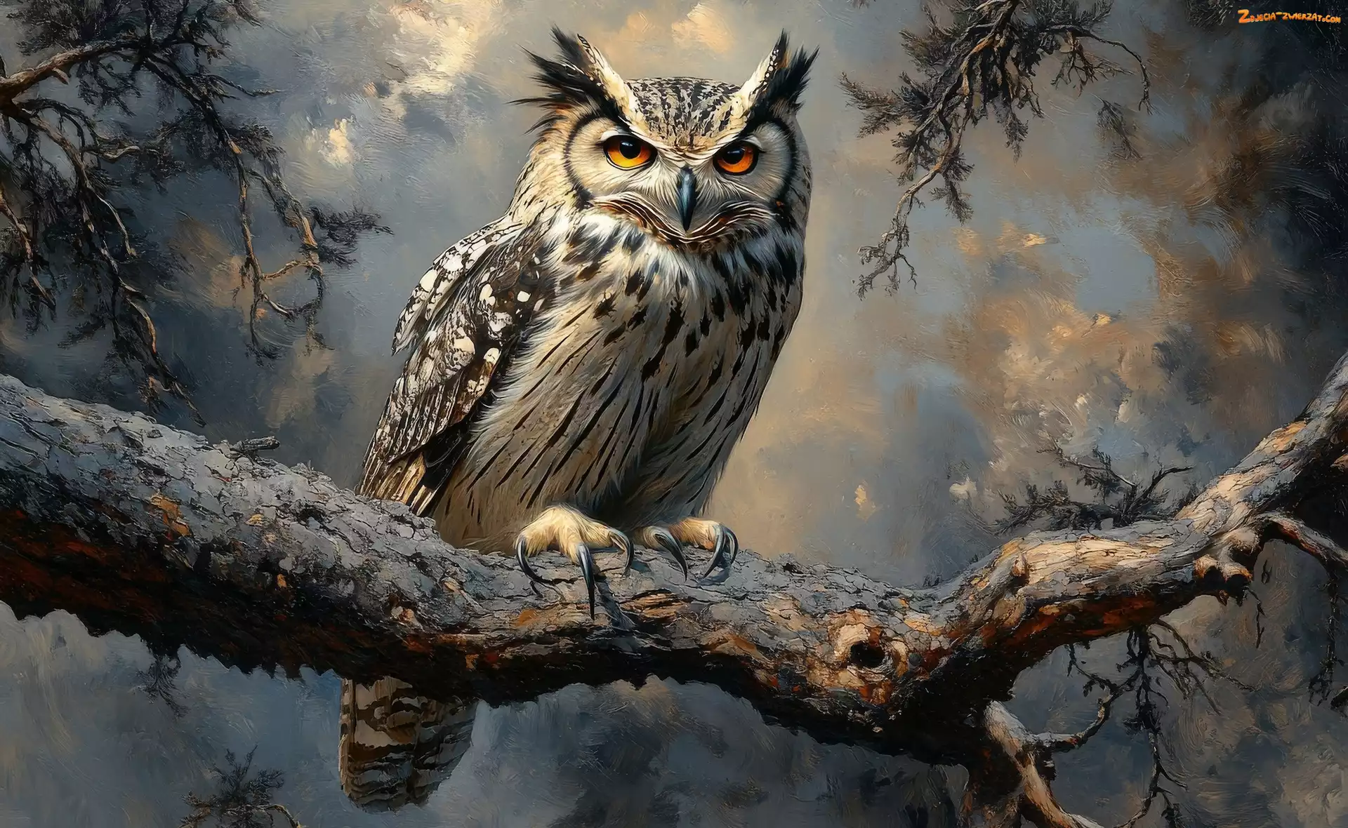 Zdjęcie: Sowa, Puchacz, Grafika, Gałąź