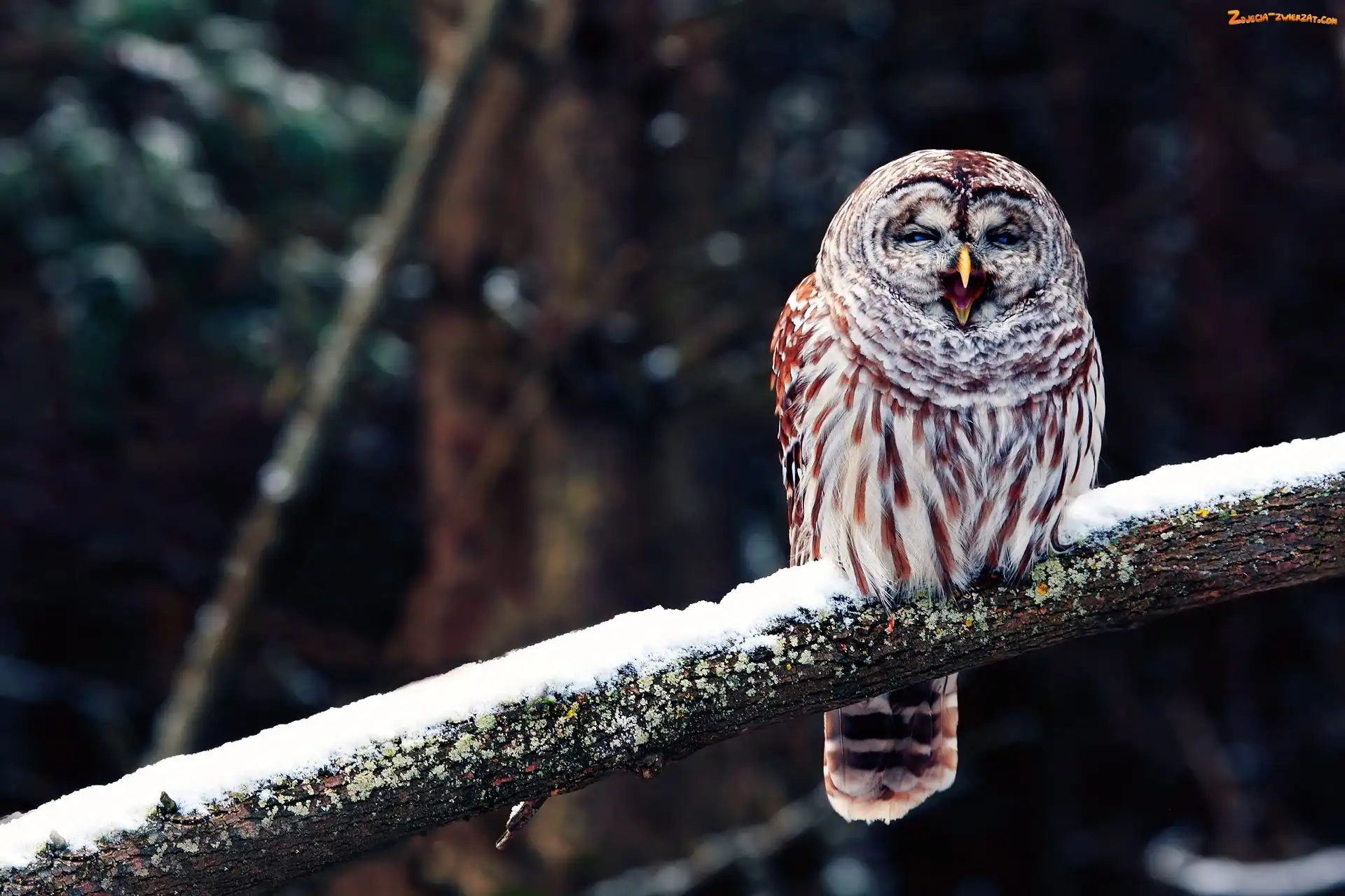 Gałąź, Zima, Sowa, Drzewa