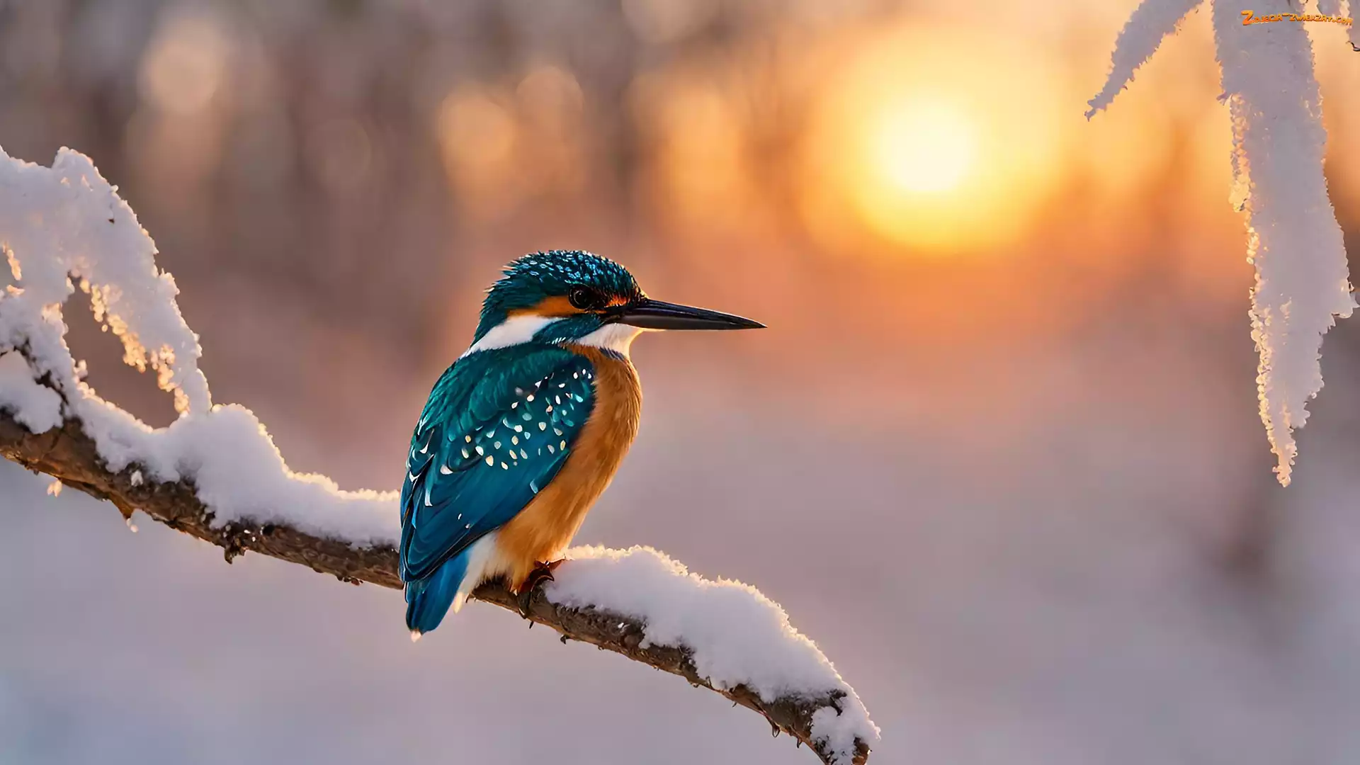 Zdjęcie: Zimorodek, Ptak, Śnieg, Gałąź