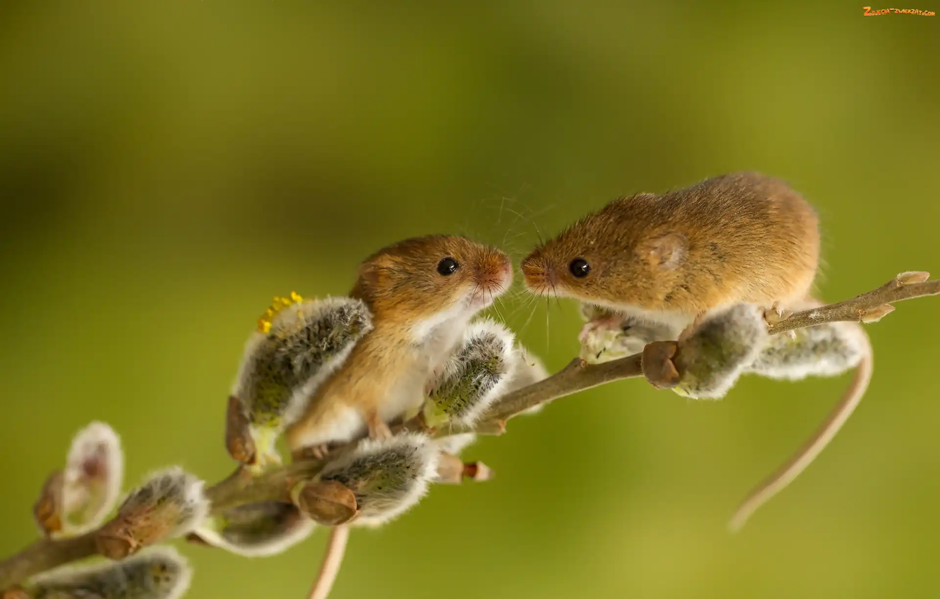 Zdjęcie: Gałązka, Pocałunek, Słodkie, Dwie, Myszki