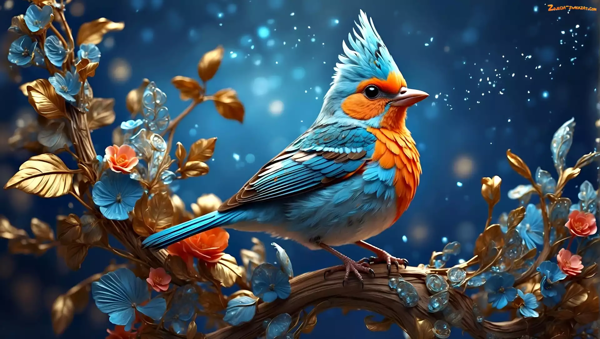 Zdjęcie: Kwiaty, Gałązka, Grafika, Ptak, Kolorowy