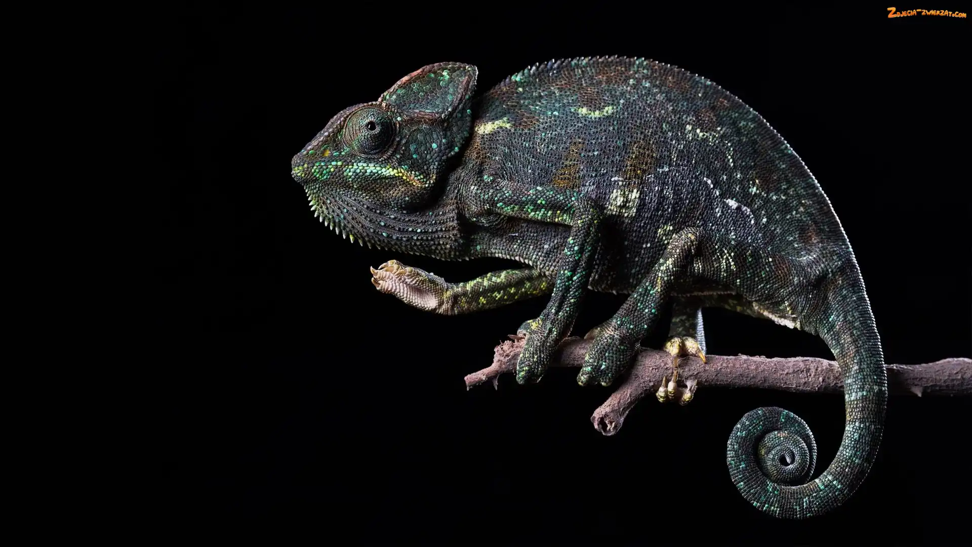 Zdjęcie: Gałązka, Tło, Kameleon, Czarne