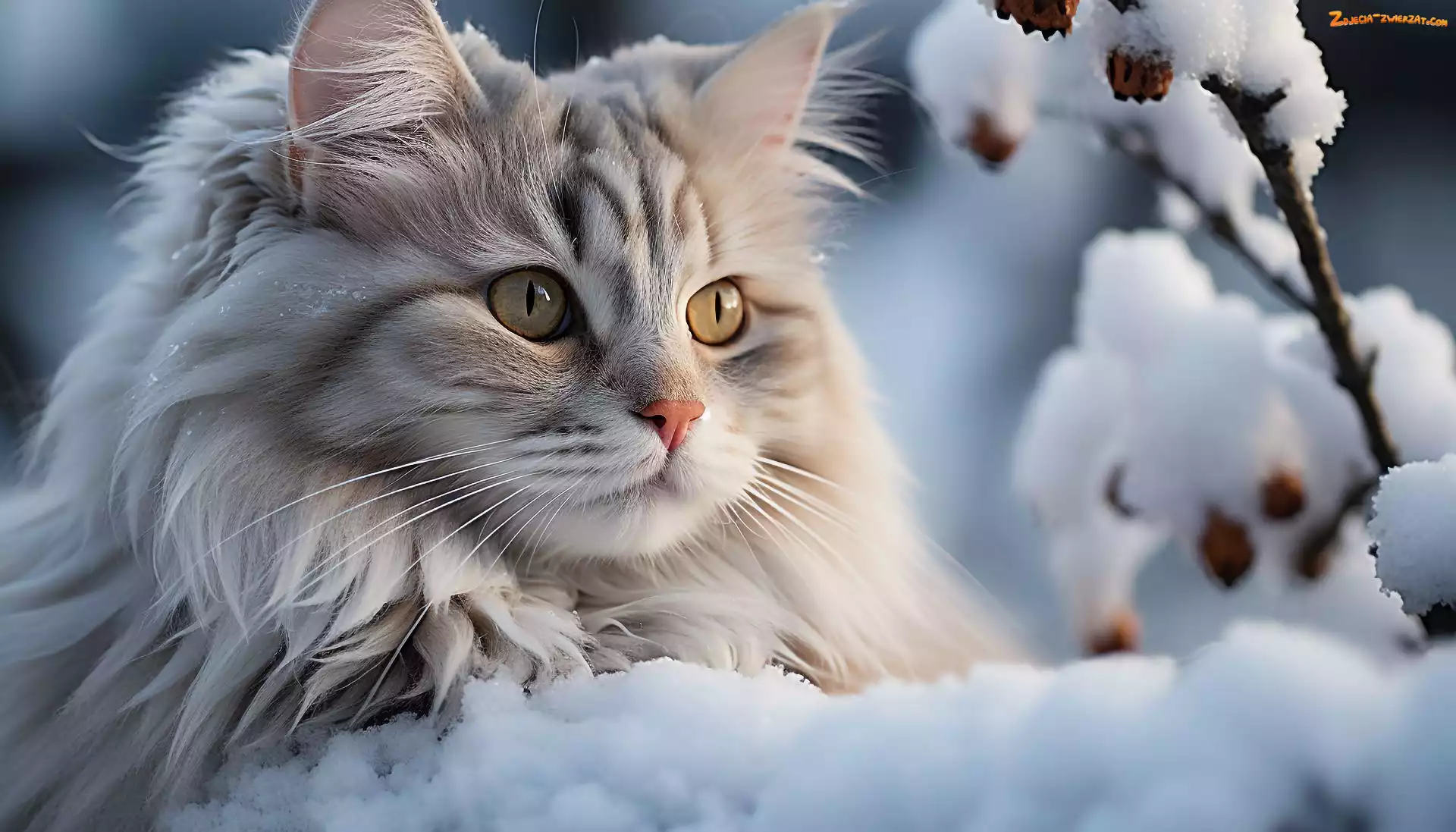 Zdjęcie: Kot, Śnieg, Zima, Gałązka