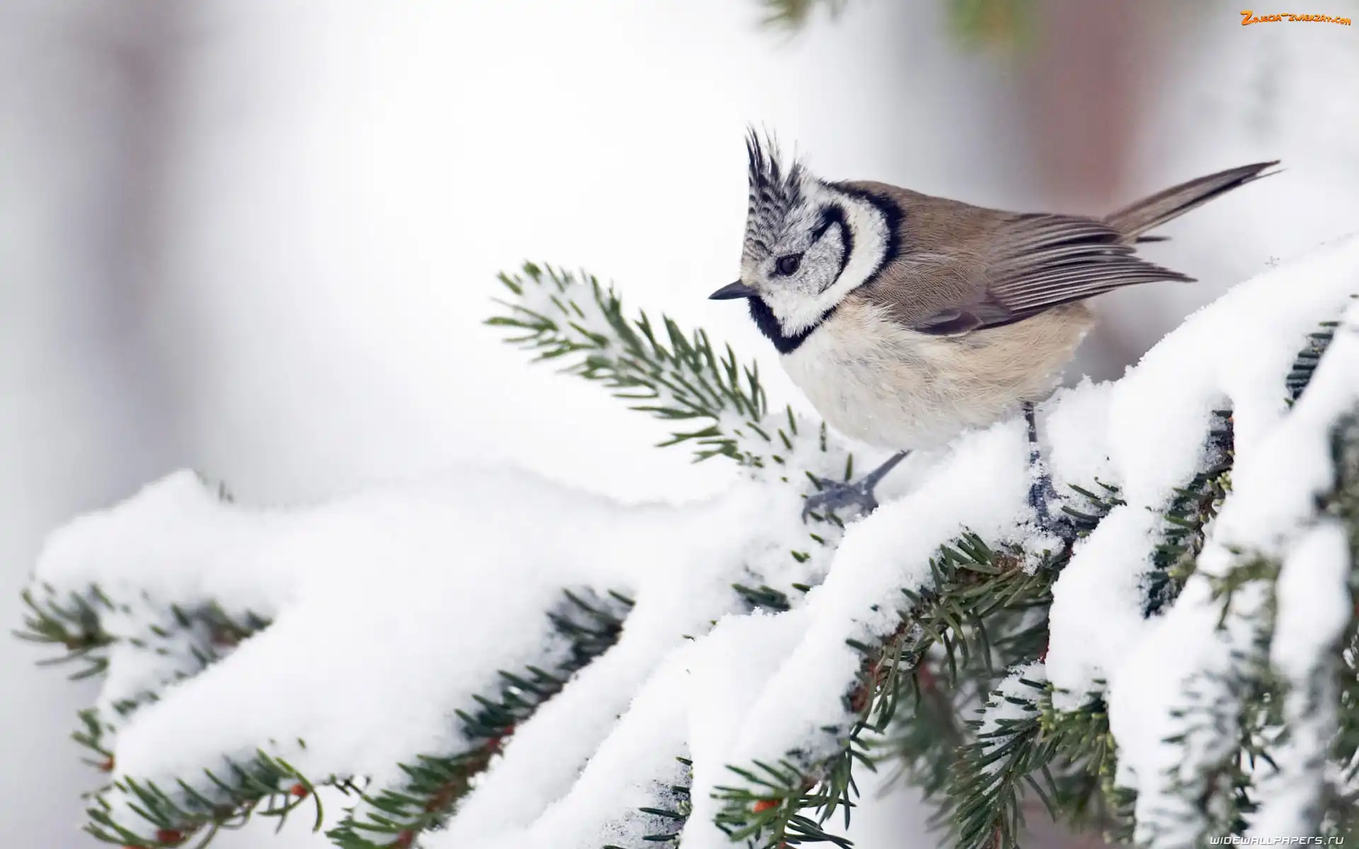 Zdjęcie: Sikorka Czubatka, Gałązka Ośnieżona