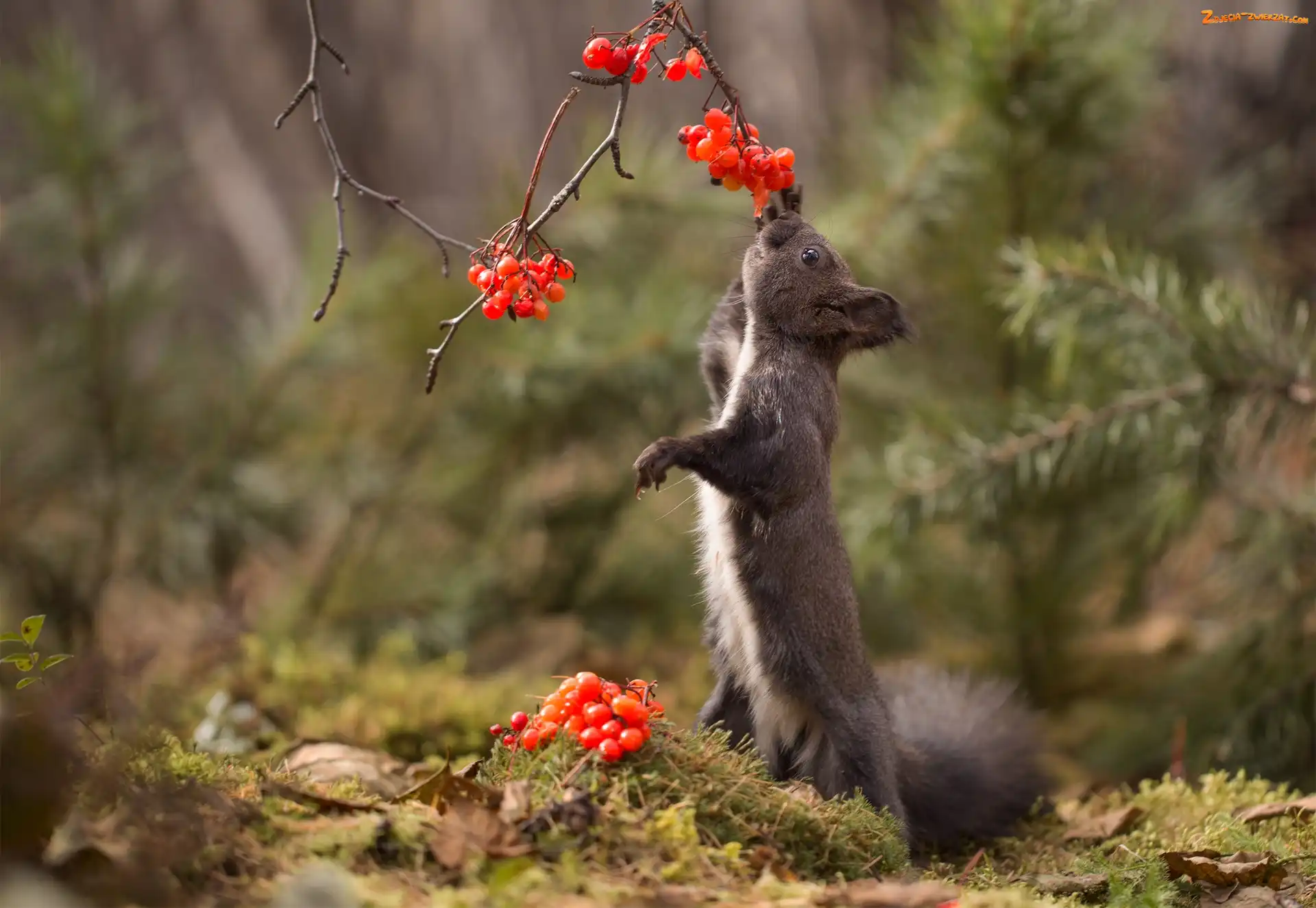 Zdjęcie: Gałązka, Jagody, Wiewiórka, Czerwone
