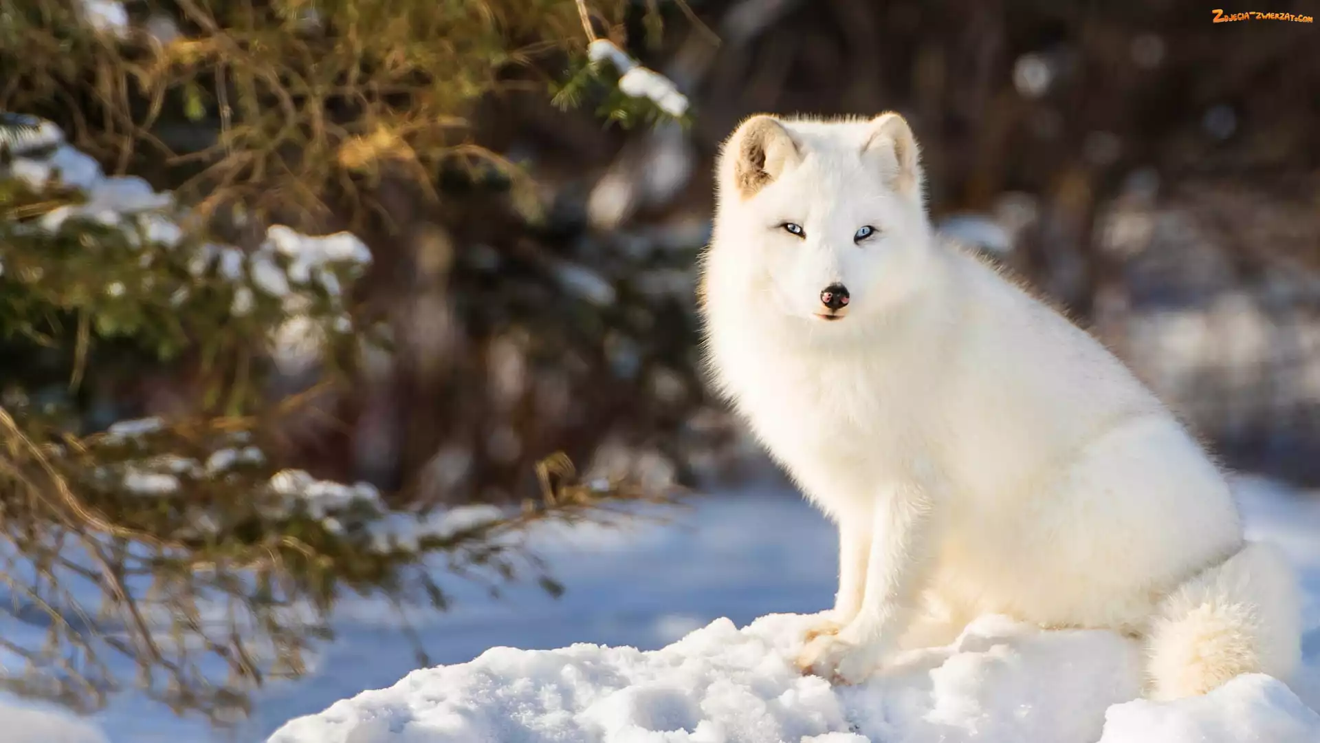 Zdjęcie: Gałązki, Rozmyte, Lis polarny, Biały, Śnieg