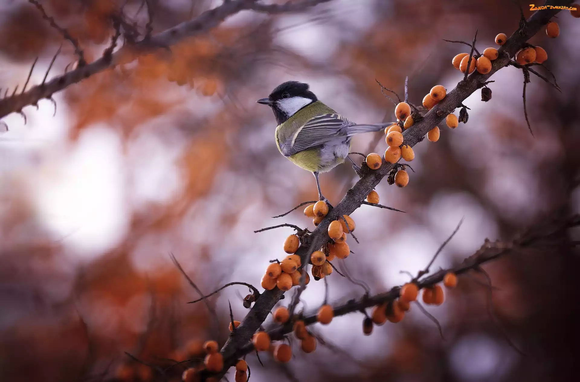 Zdjęcie: Gałązki, Sikorka, Bogatka zwyczajna