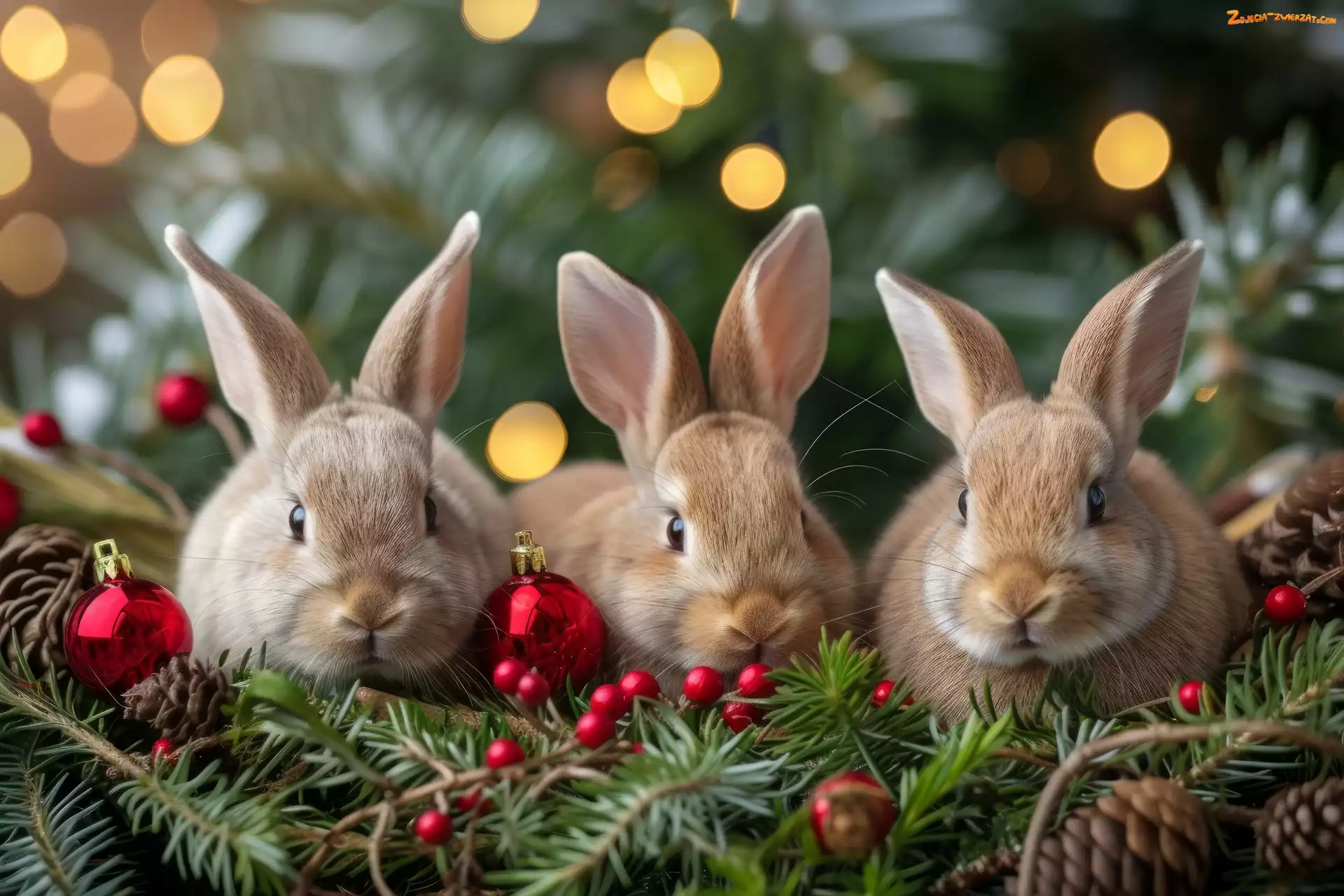 Zdjęcie: Świerkowe, Gałązki, Bombki, Trzy, Króliki