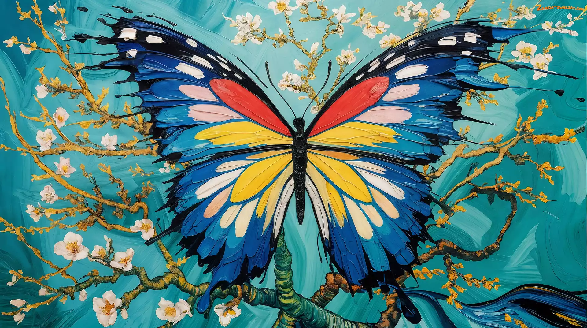 Zdjęcie: Grafika, Motyl, Kwiaty, Gałązki