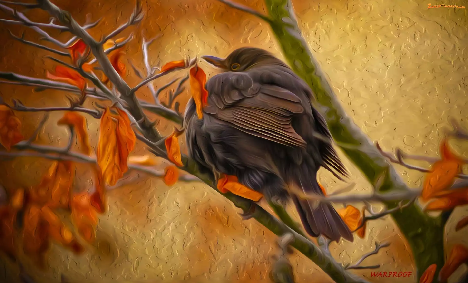 Zdjęcie: Gałązki, Kos, Paintography, Grafika, Ptak