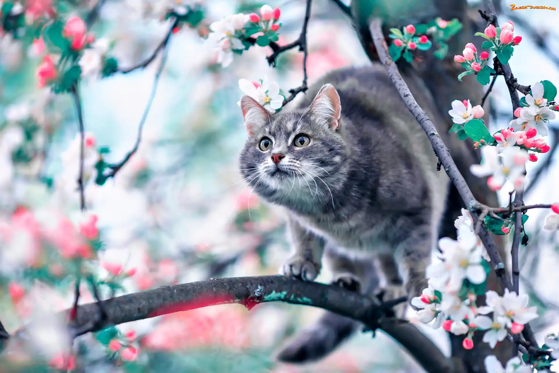 Zdjęcie: Gałązki, Drzewo, Kot, Kwitnące