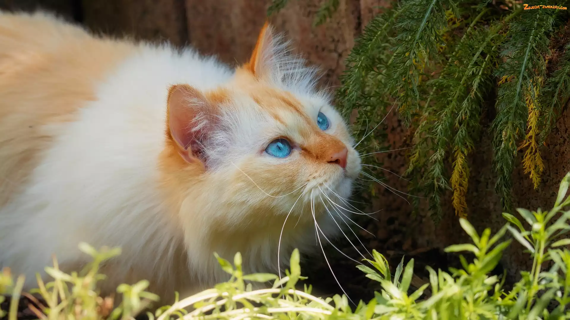 Zdjęcie: Kot, Niebieskooki, Rośliny, Gałązki