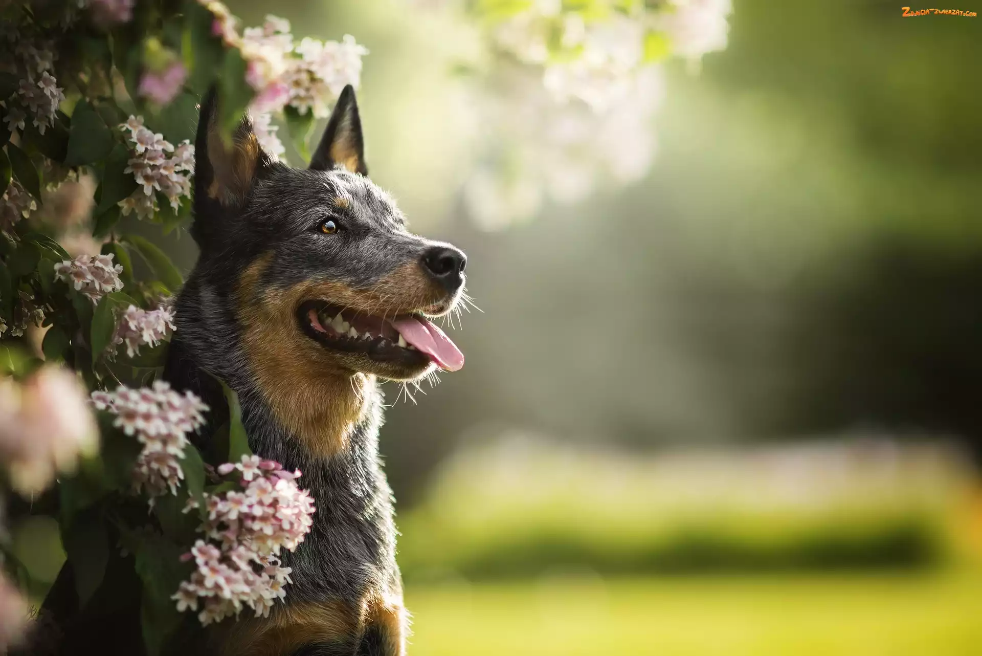 Zdjęcie: Kwiaty, Gałązki, Australian cattle dog, Pies, Mordka