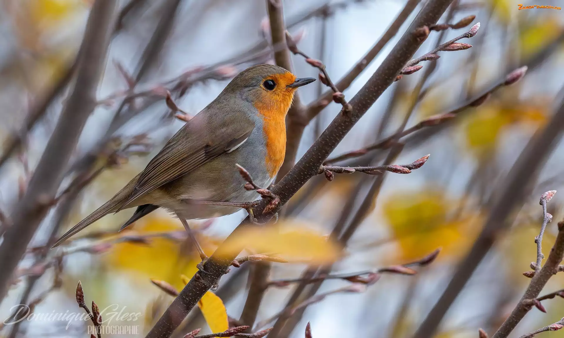 Zdjęcie: Rozmyte, Gałązki, Liście, Ptak, Rudzik