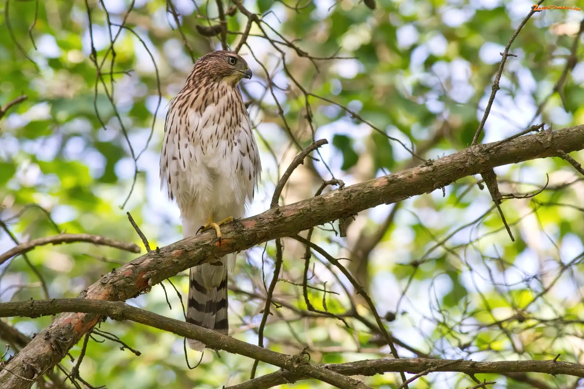 Zdjęcie: Tle, Gałęzi, Ptak, W, Liście, Na, Siedzący, Zielone