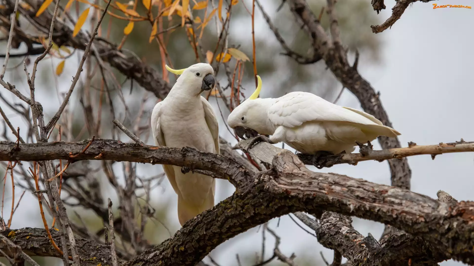 Zdjęcie: Gałęzie, Kakadu białe, Dwie, Białe, Papugi