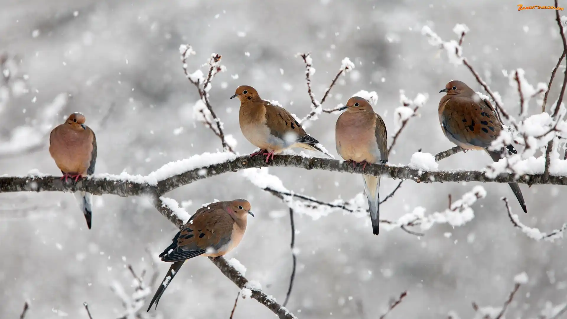 Zdjęcie: Gałęzie, Zima, Gołębie, Ptaki, Śnieg, Drzewo