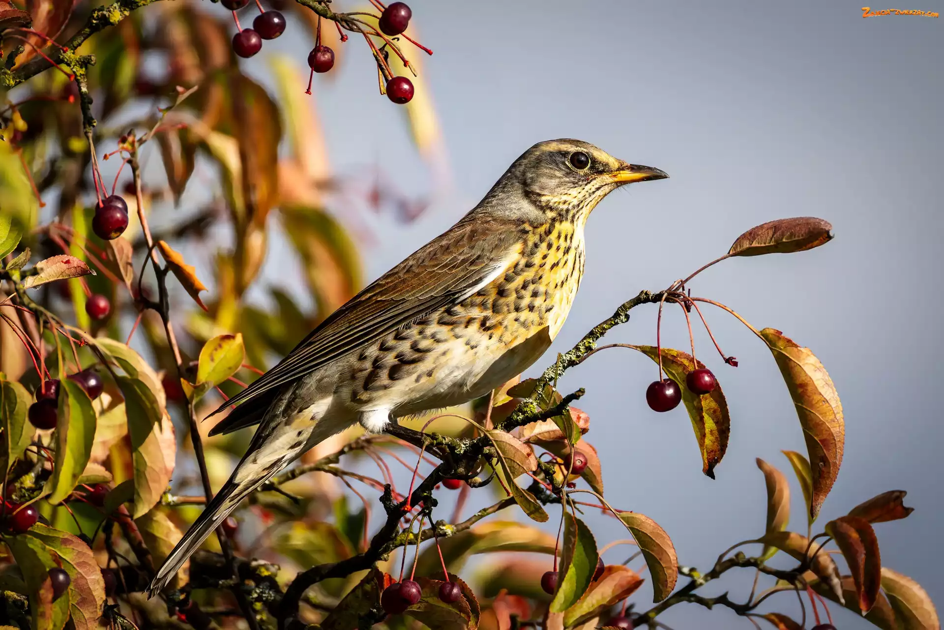 Zdjęcie: Liście, Gałęzie, Owoce, Kwiczoł, Ptak