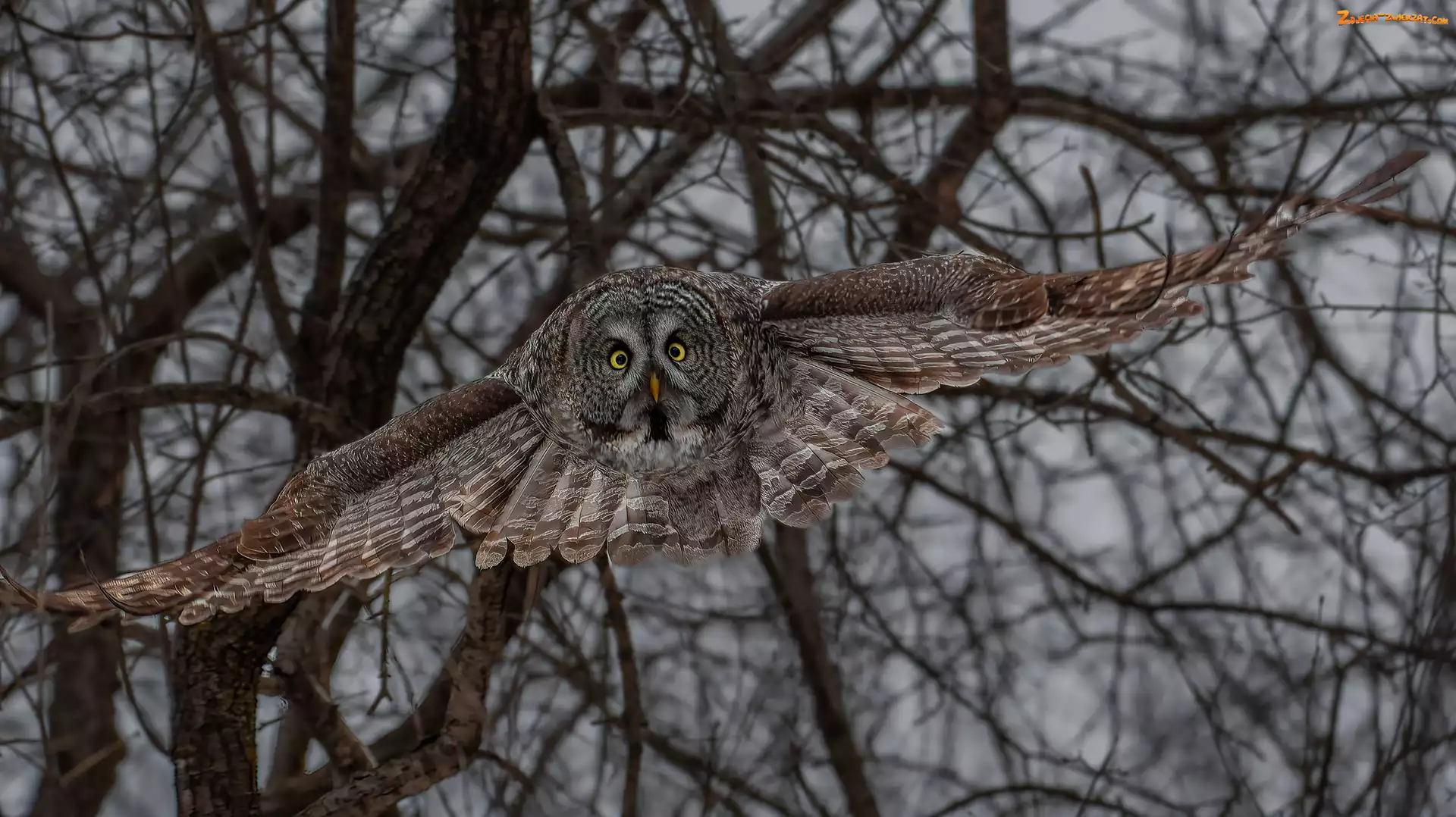 Zdjęcie: Puszczyk mszarny, Sowa, Gałęzie, Lecący, Ptak