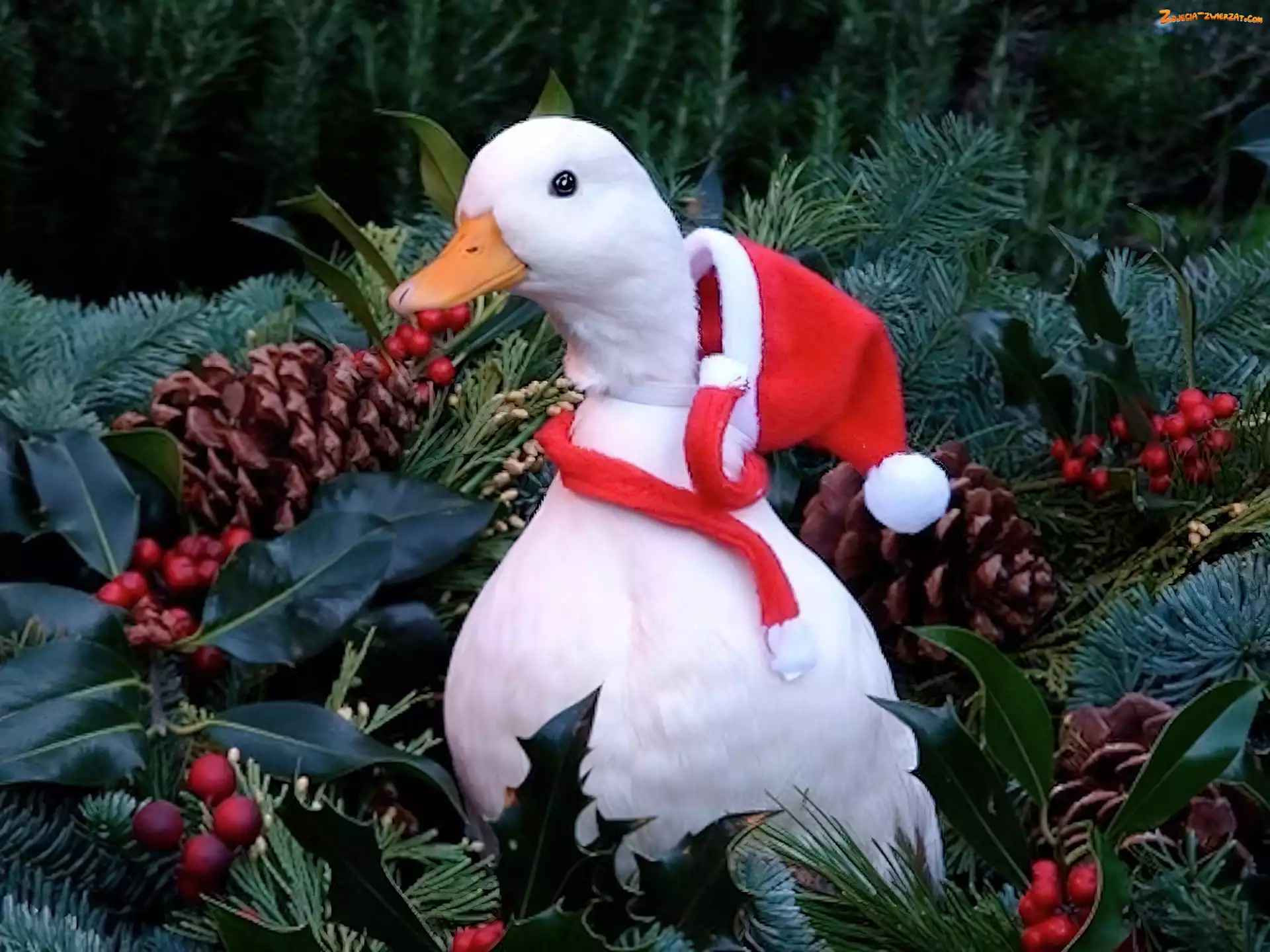 Zdjęcie: Kaczka, Mikołaja, Biała, Czapka