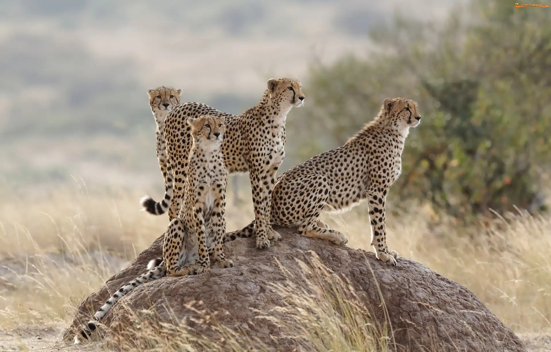 Zdjęcie: Gepardy, Trawy, Cztery, Kamień