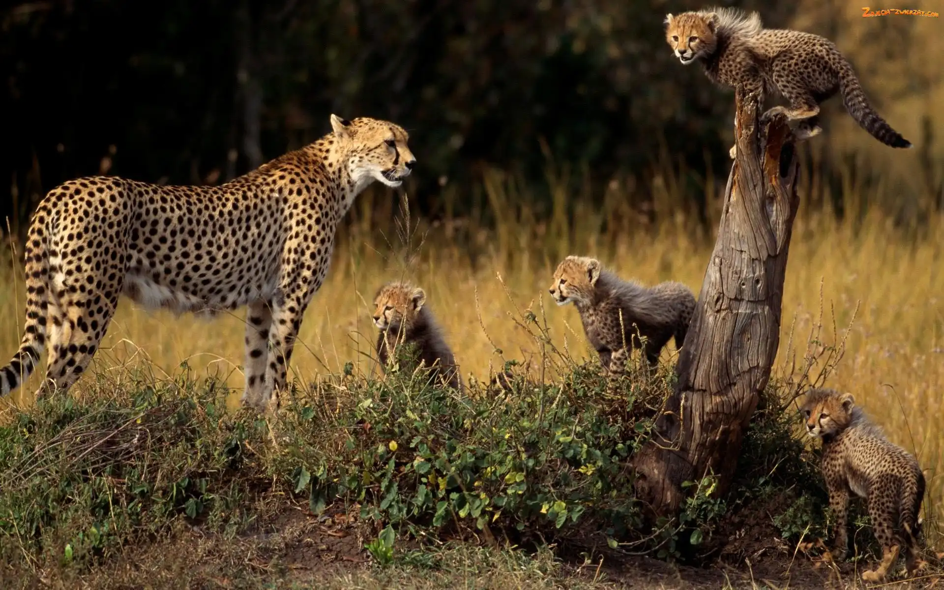 Zdjęcie: Trawa, Gepardy, Rodzina