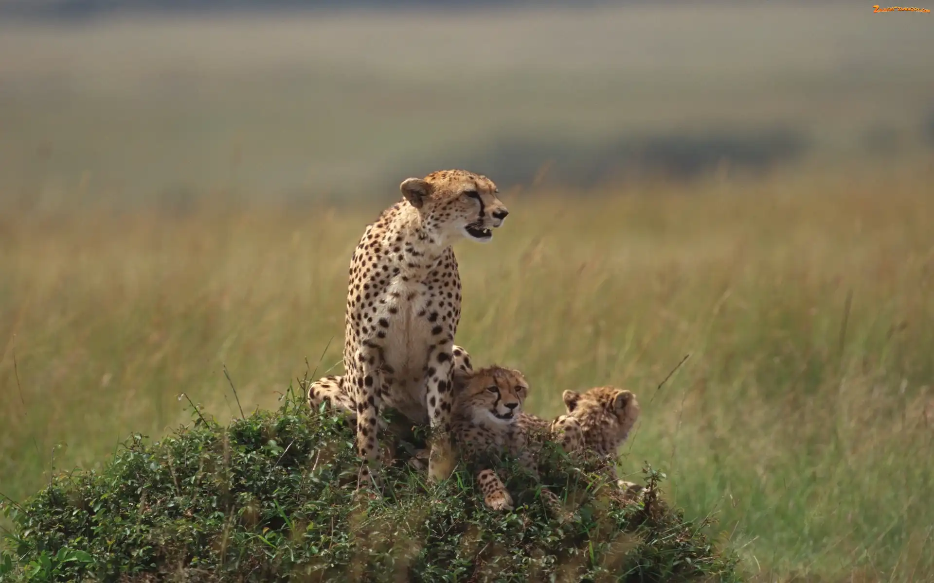 Zdjęcie: Trawa, Gepardy, Rodzina