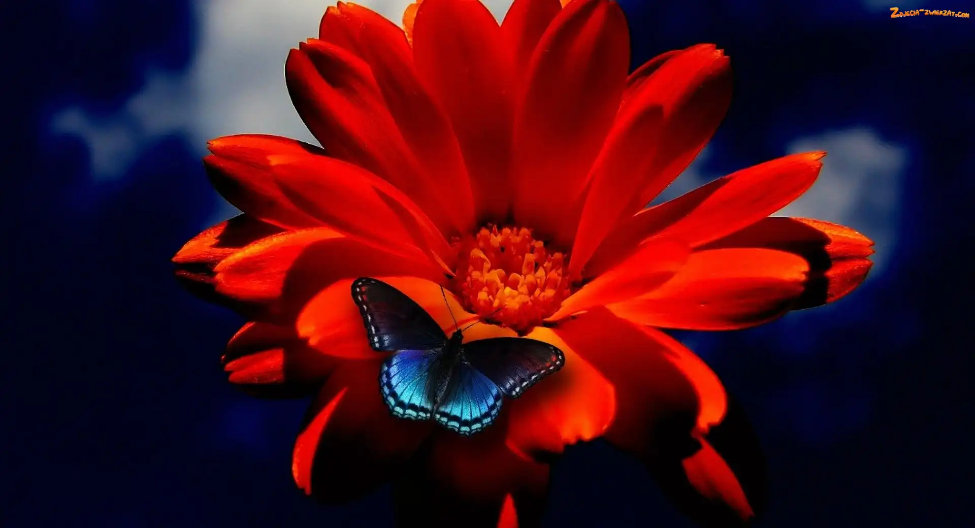 Zdjęcie: Motyl, Gerbera, Niebieski