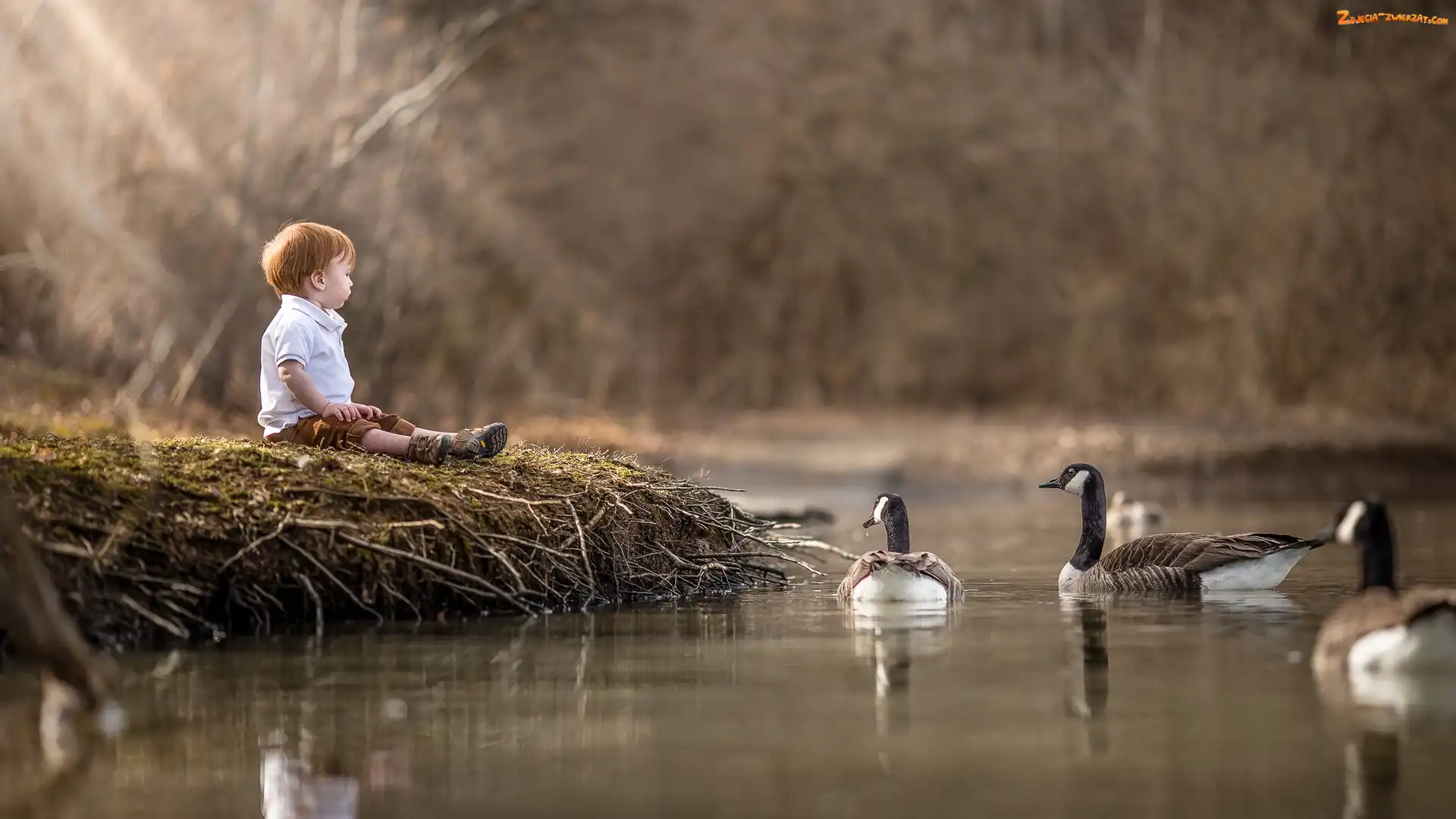 Gęsi, Woda, Dziecko, Bernikle kanadyjskie