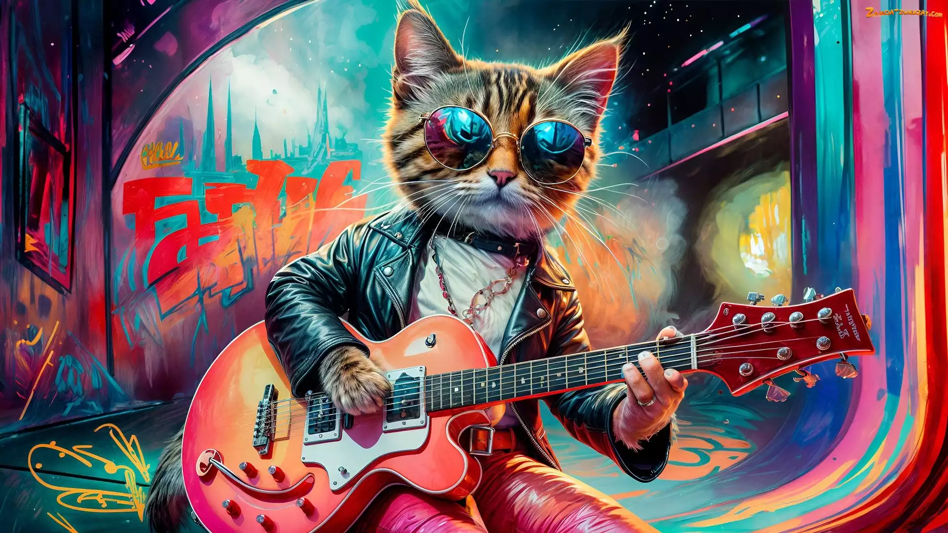 Kot, Okulary, Grafika, Gitara