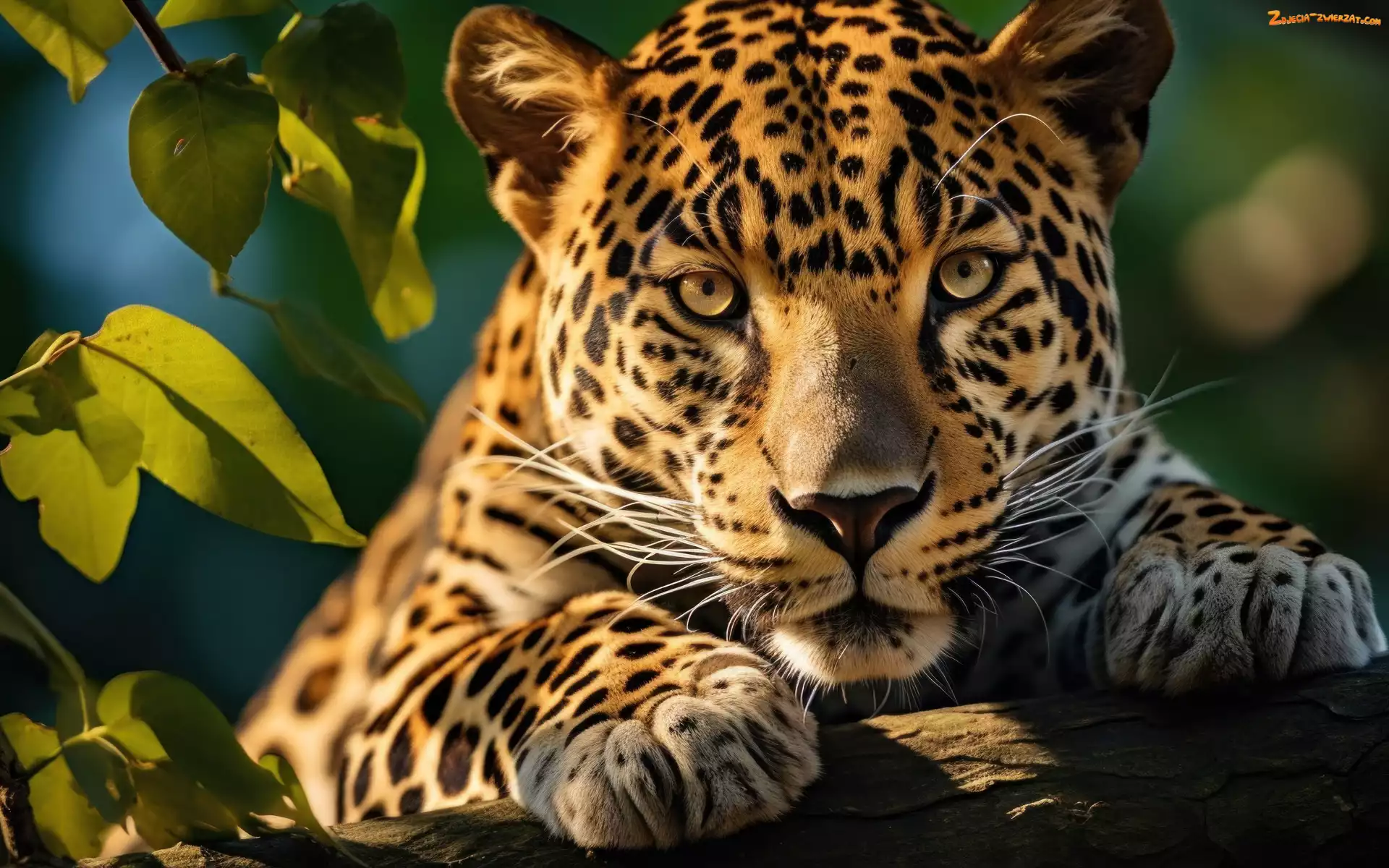 Zdjęcie: Lampart, Głowa, Grafika AI, Liście