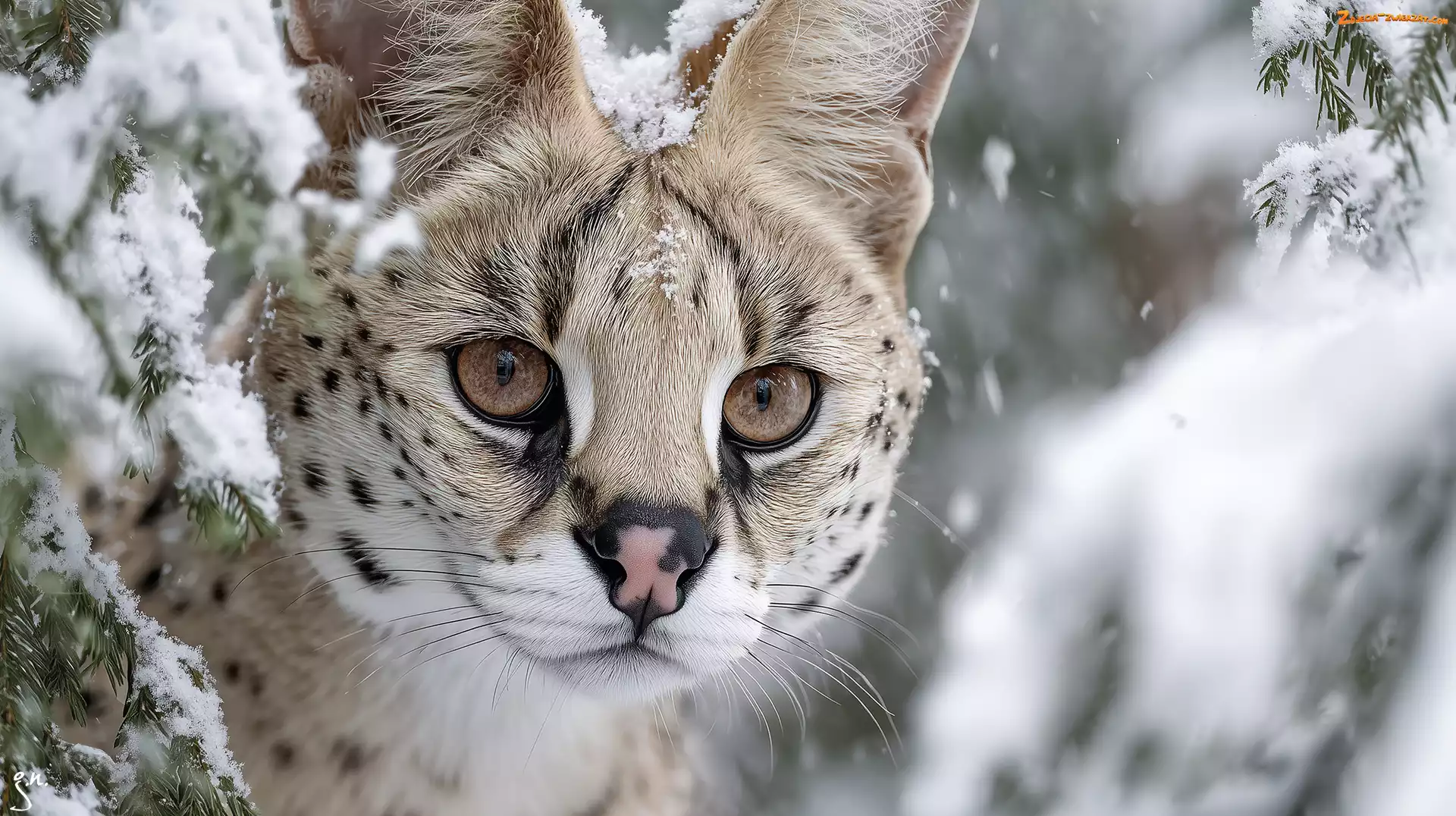 Zdjęcie: Serwal, Głowa, Grafika AI, Zima