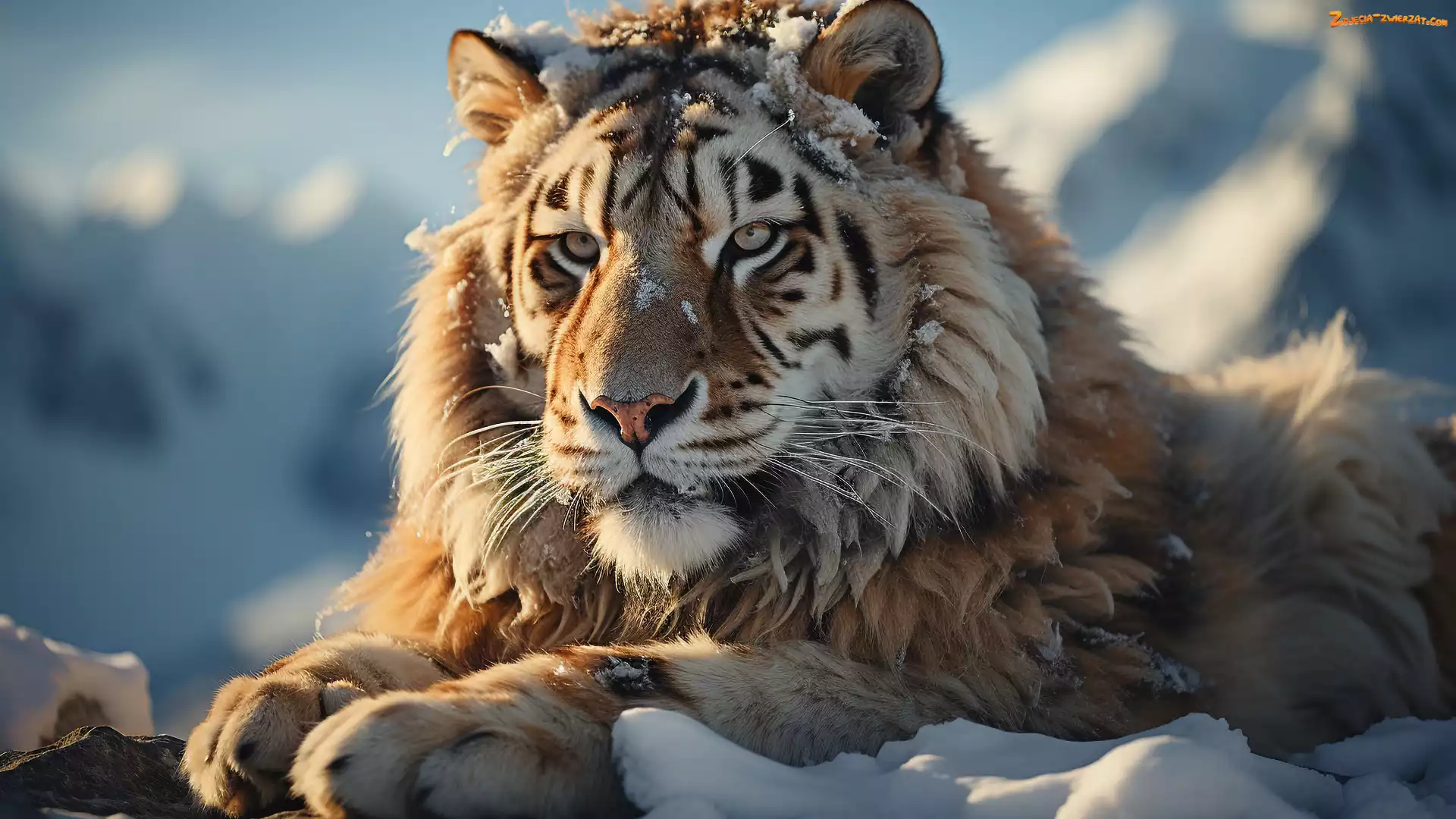 Zdjęcie: Leżący, Tygrys, Śnieg, Głowa