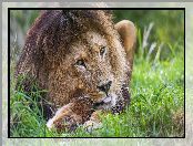 Zdjęcie: Leżący, Lew, Trawa, Głowa