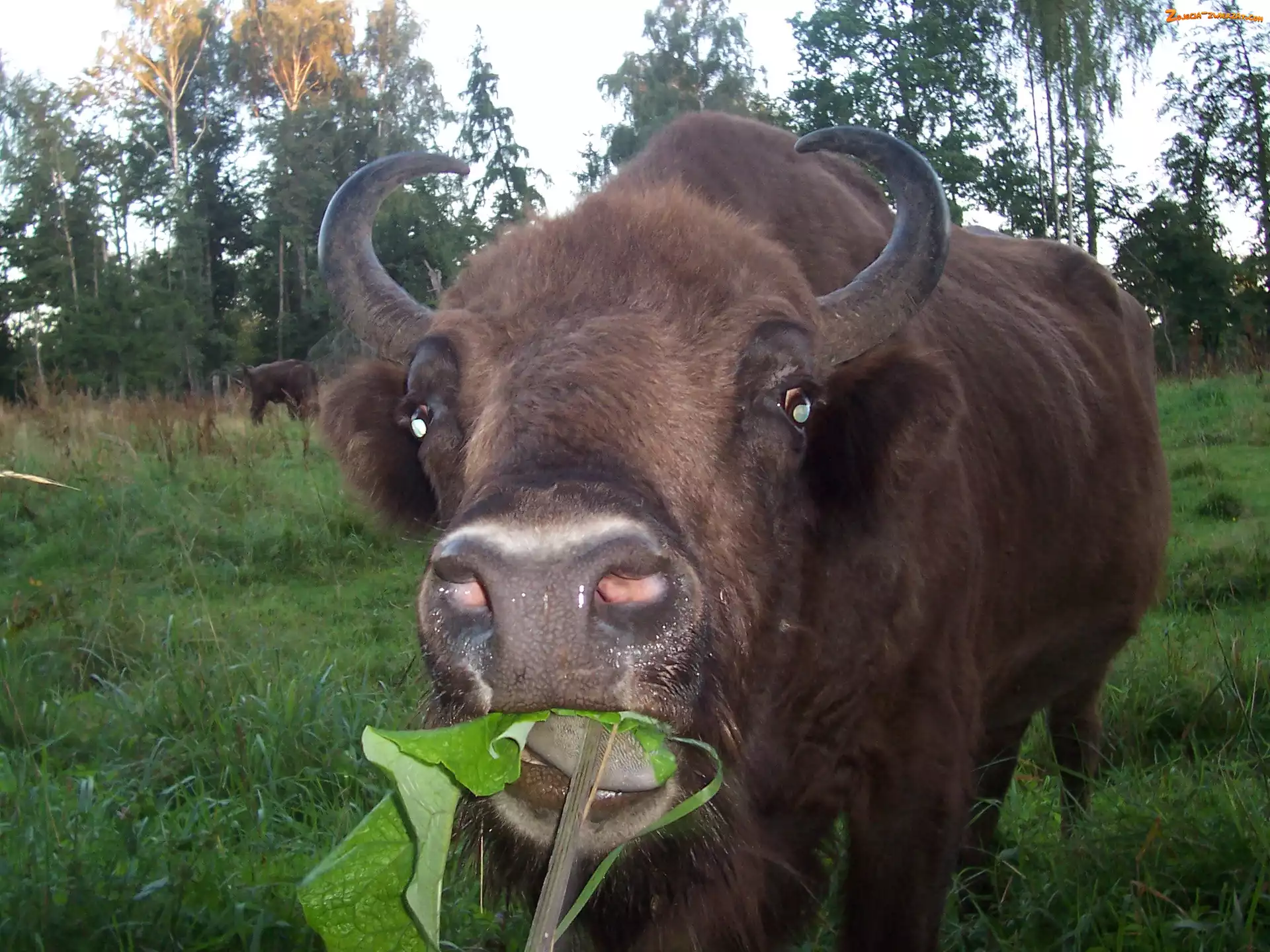 Zdjęcie: Żubra, rogi, Głowa, zawinięte