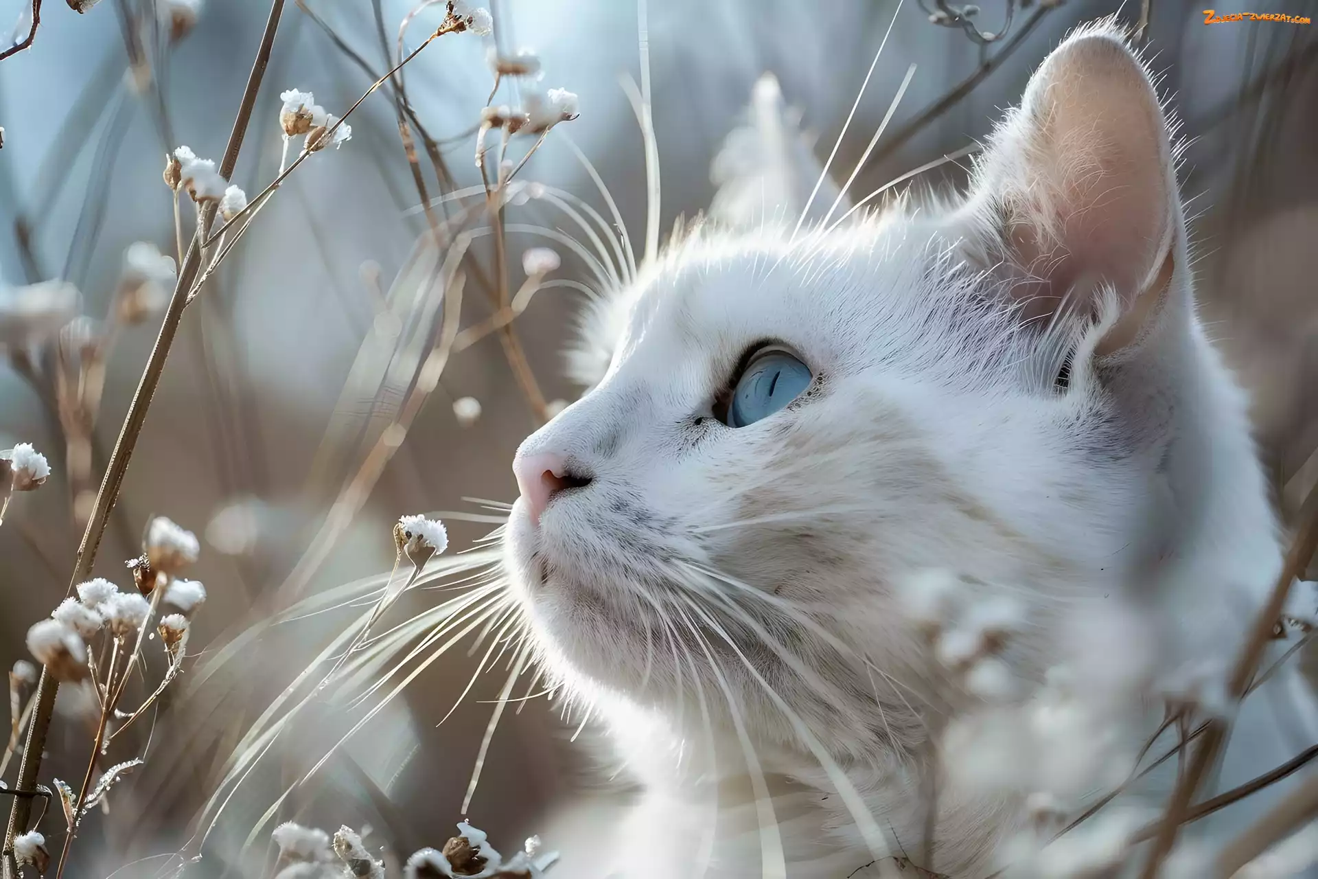 Zdjęcie: Suche, Głowa, Rośliny, Kot, Biały