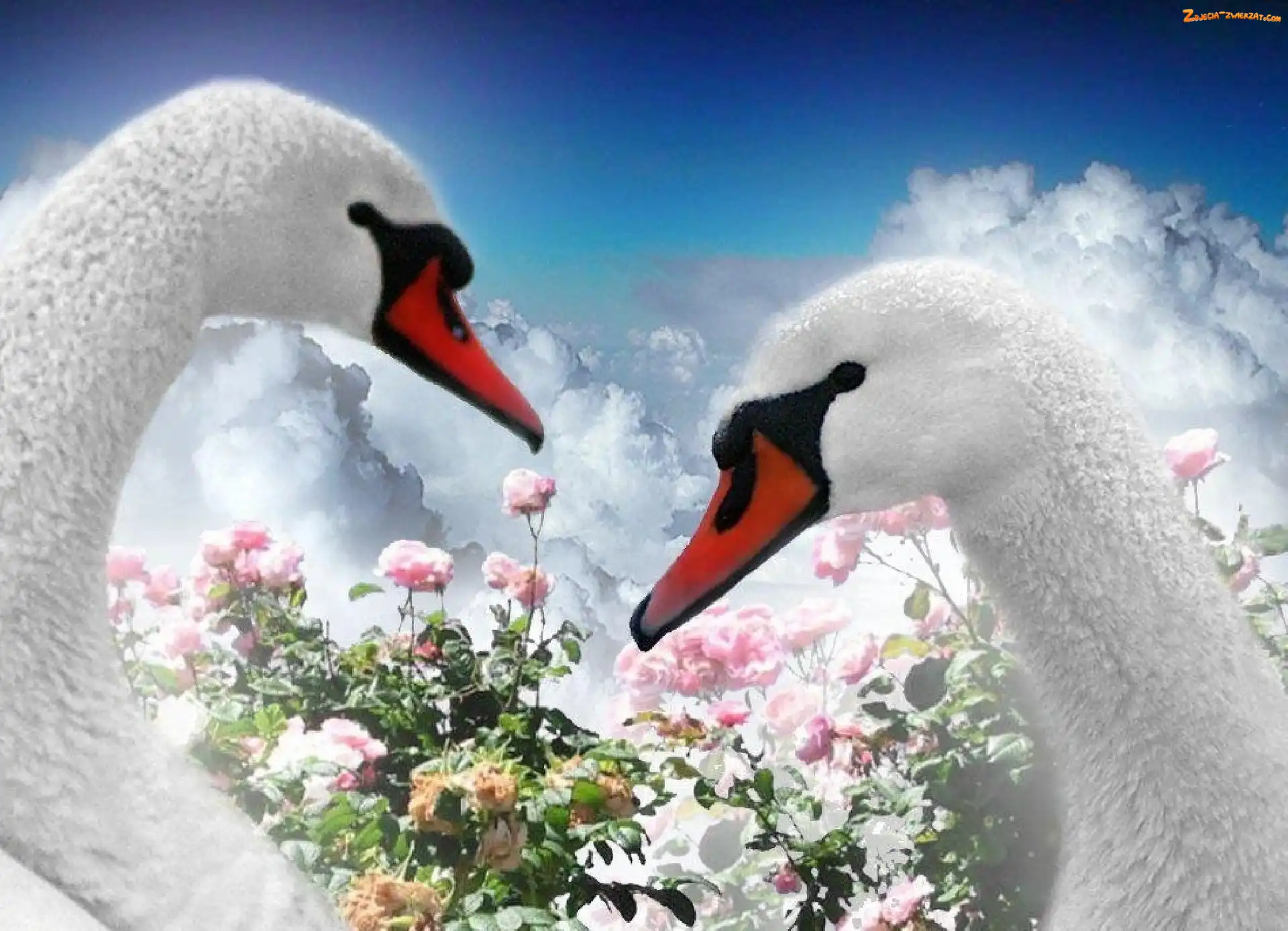 Zdjęcie: Główki, Miłość, Łabędzie, Kwiatki
