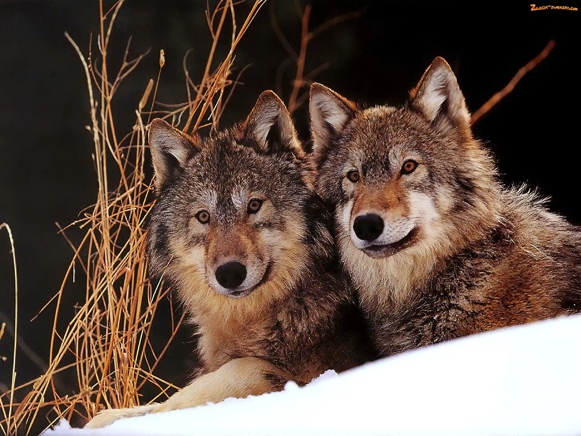 Zdjęcie: Głowy, Śnieg, Wilki, Gałązki