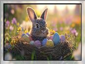 Królik, Pisanki, Wielkanoc, Gniazdko