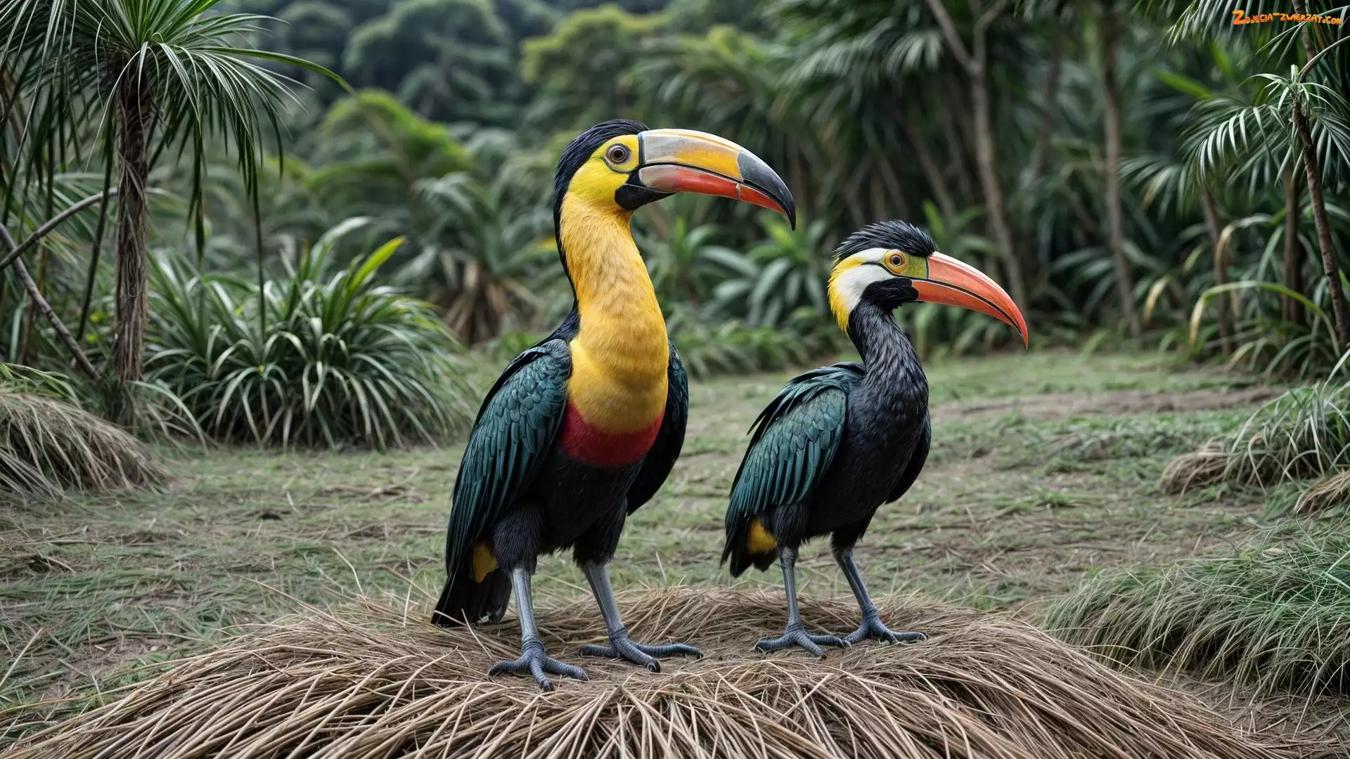 Zdjęcie: Drzewa, Gniazdo, Grafika, Dwa, Tukany