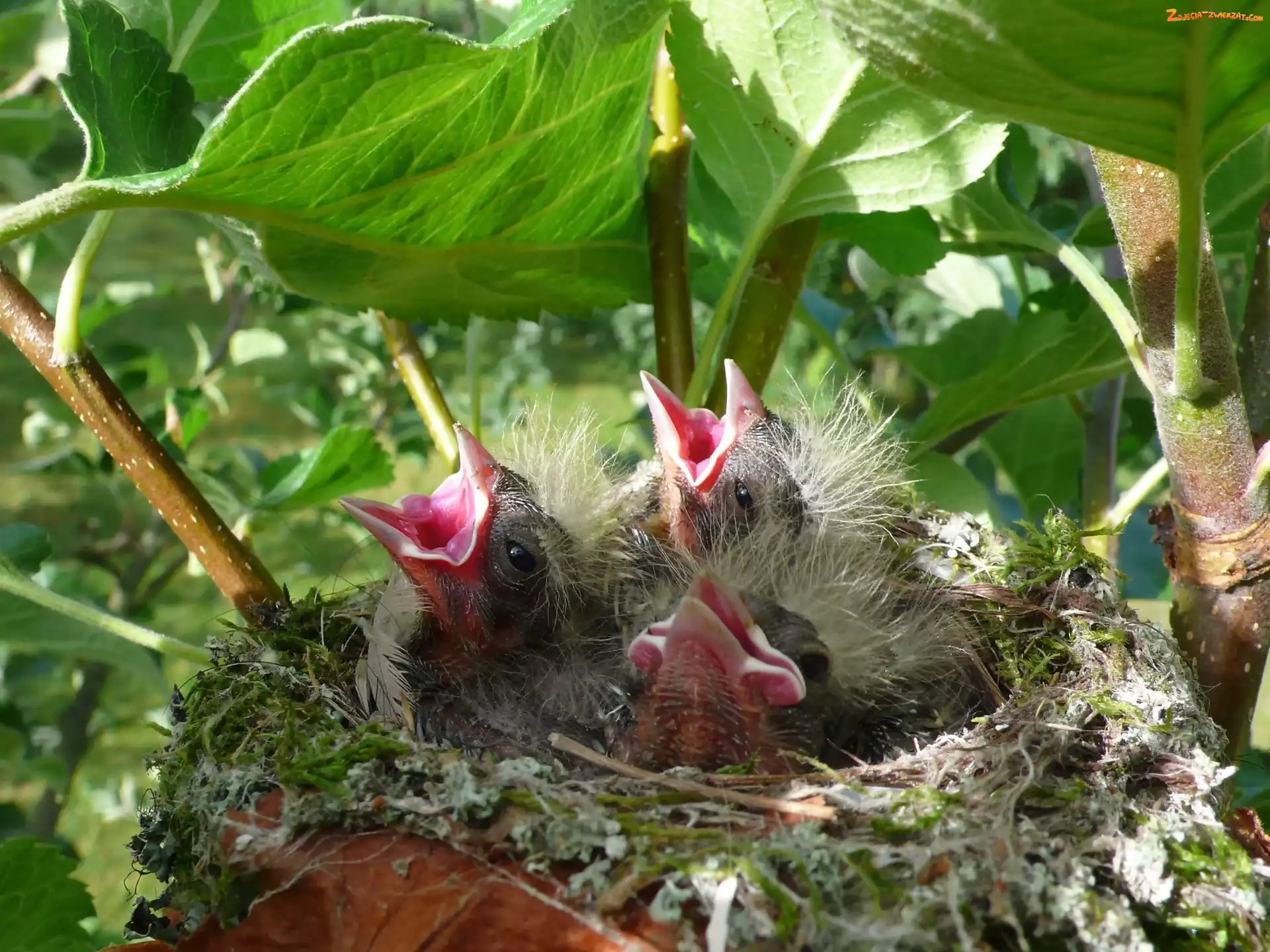 Zdjęcie: Gniazdo, Wiosna, Pisklęta, Liście