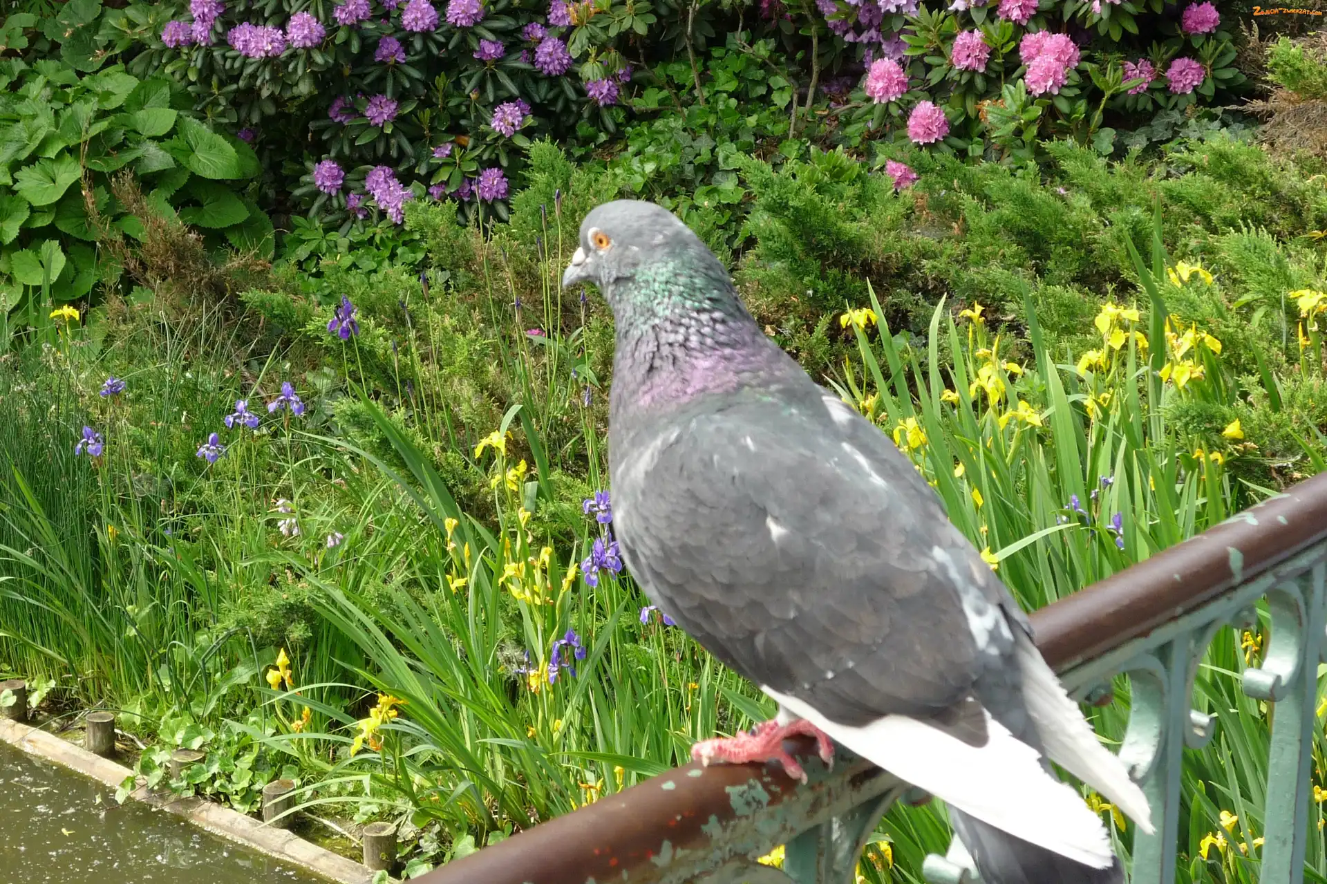Zdjęcie: Kwiaty, Gołąb, Poręcz