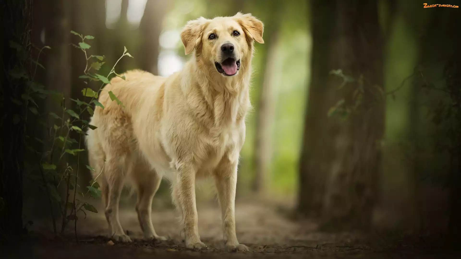Zdjęcie: Golden retriever, Las, Pies, Drzewa