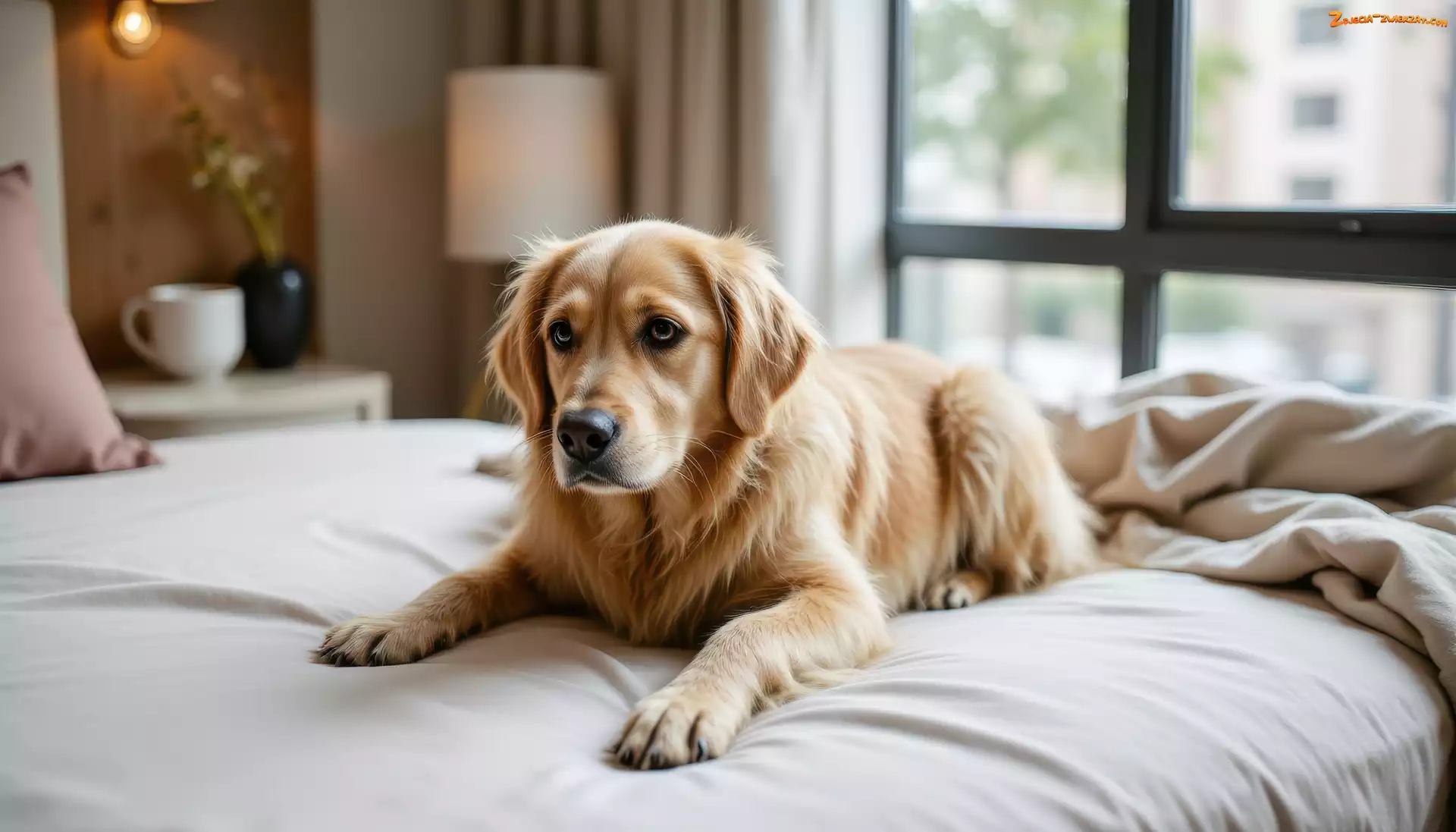 Zdjęcie: Pies, Golden retriever, Okno, Łóżko